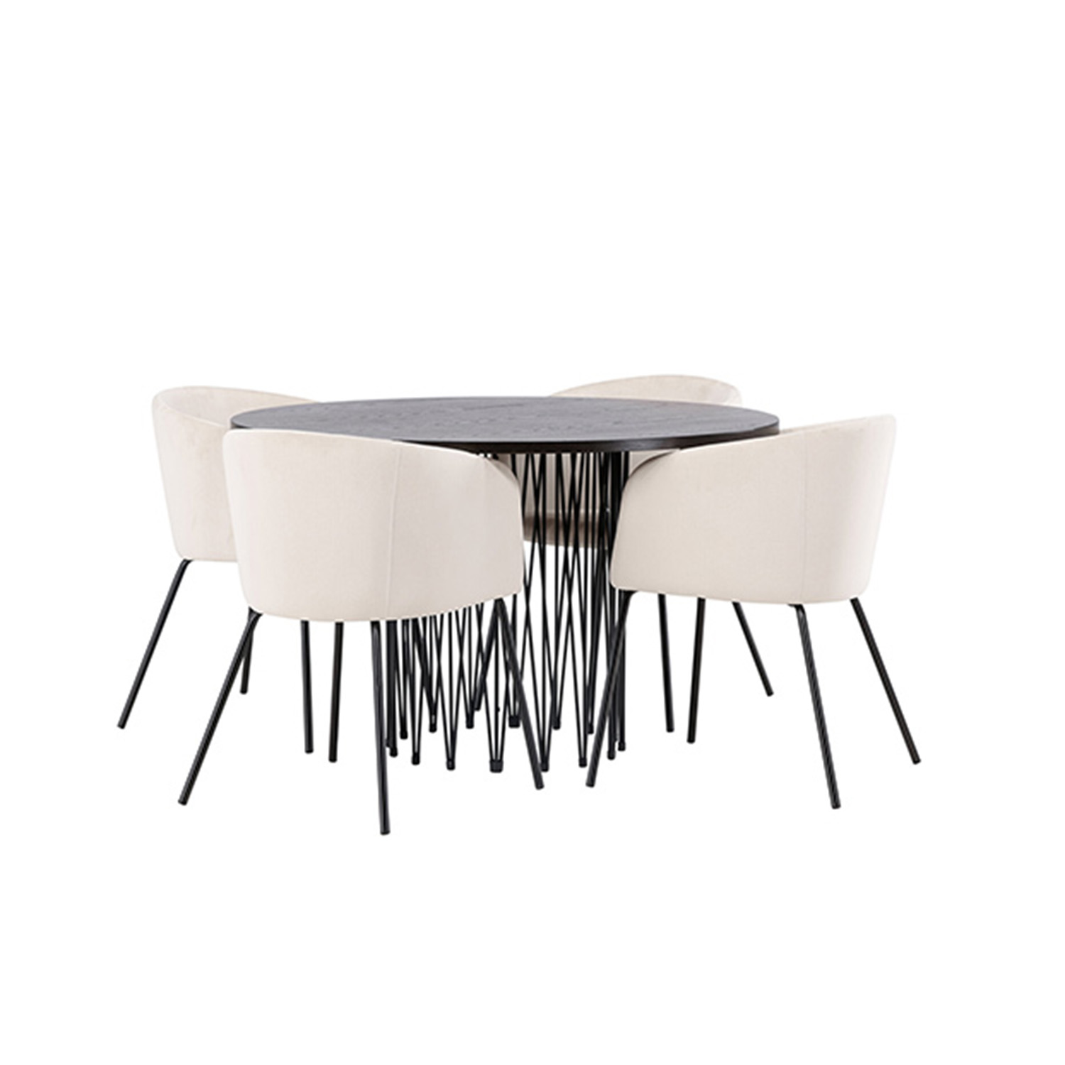 Moderna former och lyxigt utförande! Det runda matbordet Stone imponerar har en modemedveten design med en vacker bordsskiva i MDF med faner och ett dekorativt cylinderformat underrede i metall. Här tillsammans med våra bekväma matstolar Berit. Stolen har en helklädd design med lätt rundad rygg och sits i polysterlinne samt smala stolsben i svart järn. En underbar kombination helt enkelt!
