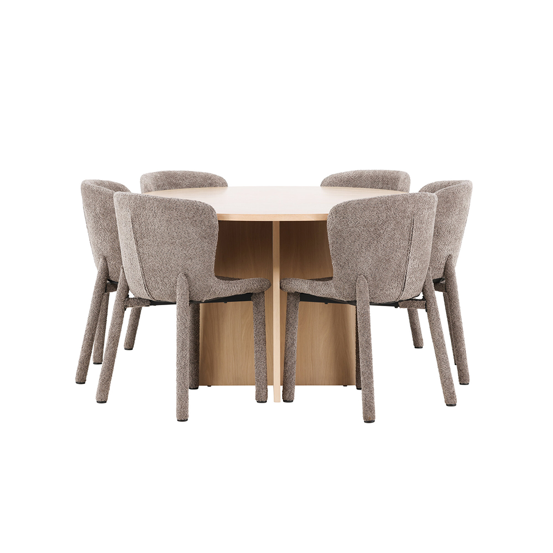 Skapa en elegant och inbjudande matplats med matstolen Astoria och matbordet Strada – en perfekt kombination av sofistikerad komfort och tidlös design. Förhöj din matplats med matstolen Astoria, klädd i elegant brun bouclé. Den mjuka, texturerade ytan ger stolen en lyxig och omfamnande känsla, samtidigt som färgens djup och struktur smälter vackert in i både moderna och klassiska inredningsstilar.