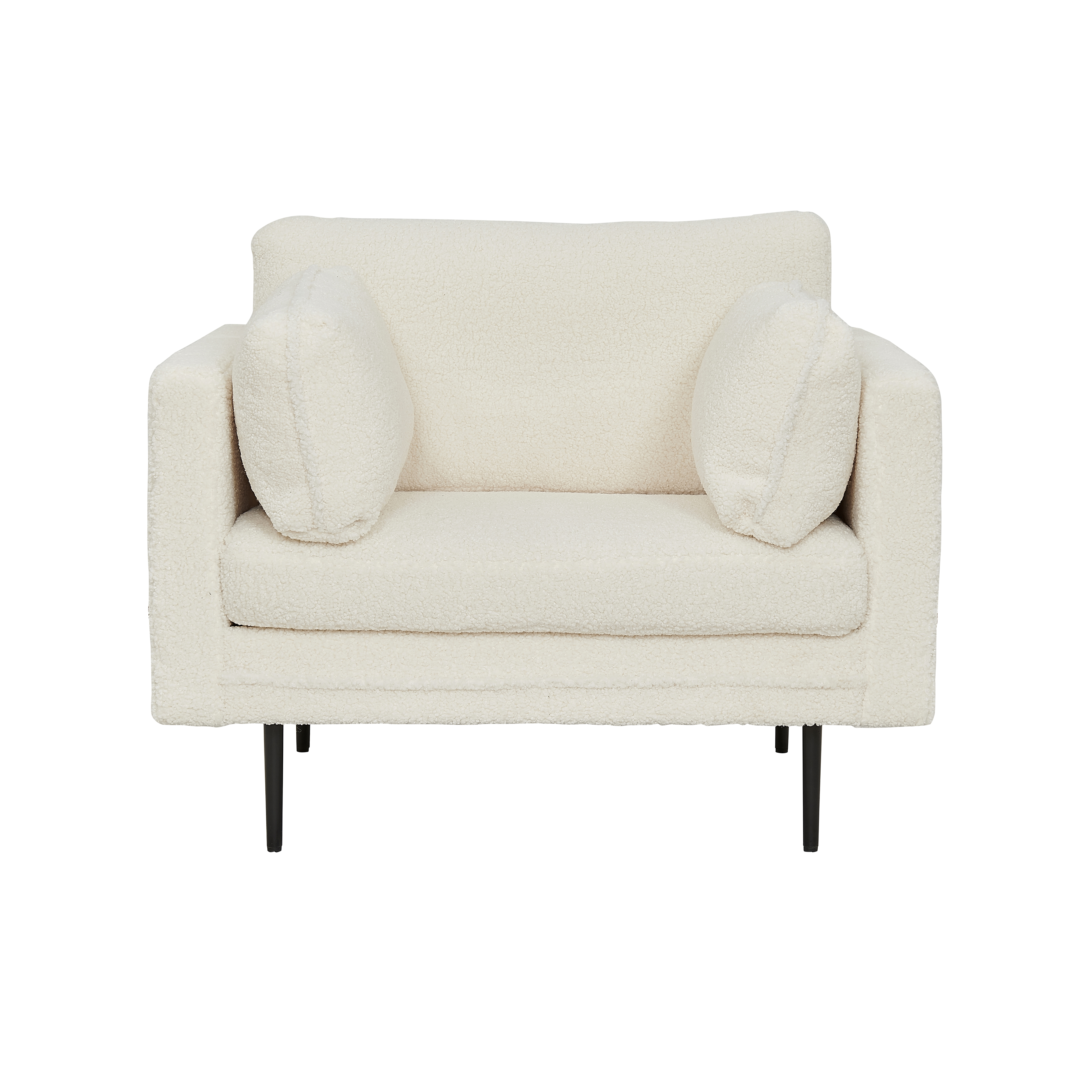Boom är en modern fåtölj i helklädd design med ben i svart pulverlackerad metall och skön sittkomfort. Fåtöljen är av fluffigt polyestertyg.