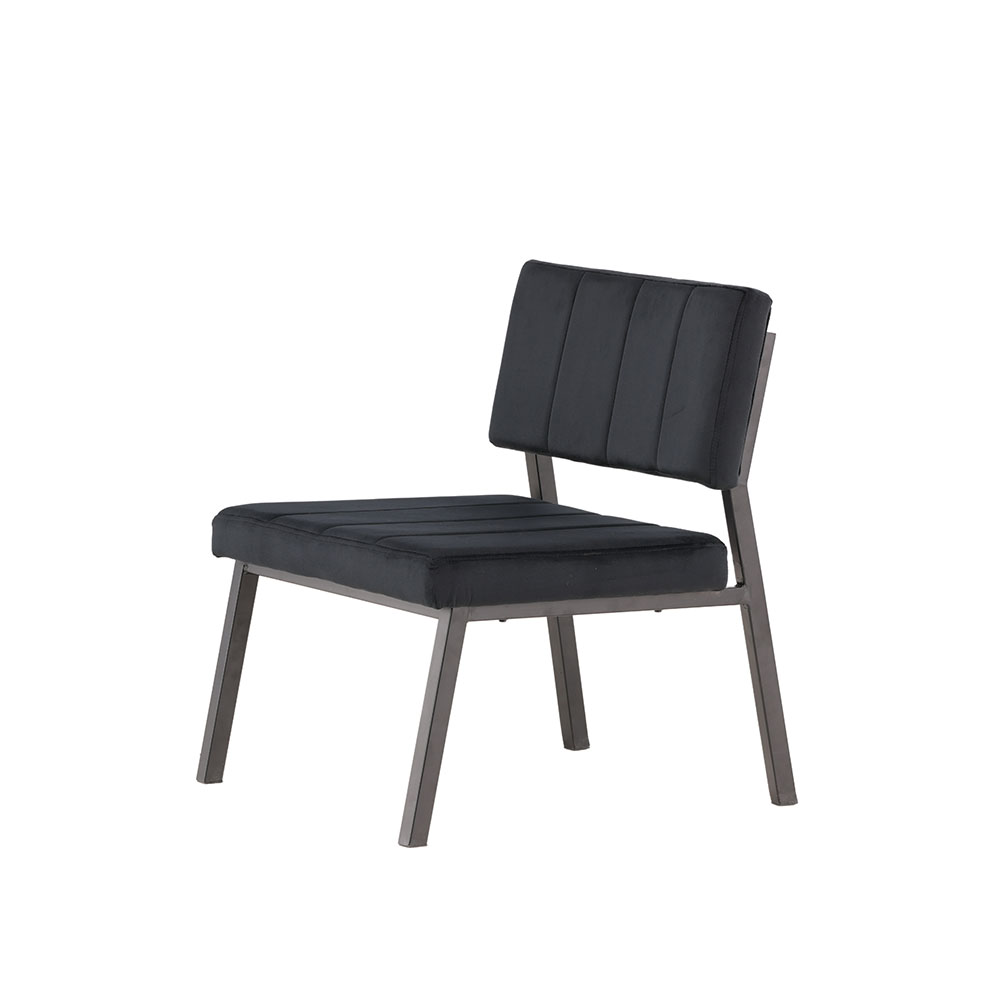 Fåtölj Monette från Venture Home har en Skandinavisk design med lätt utsvängda, cylinderformade ben i svart metall ben och en skinande sammetssits.