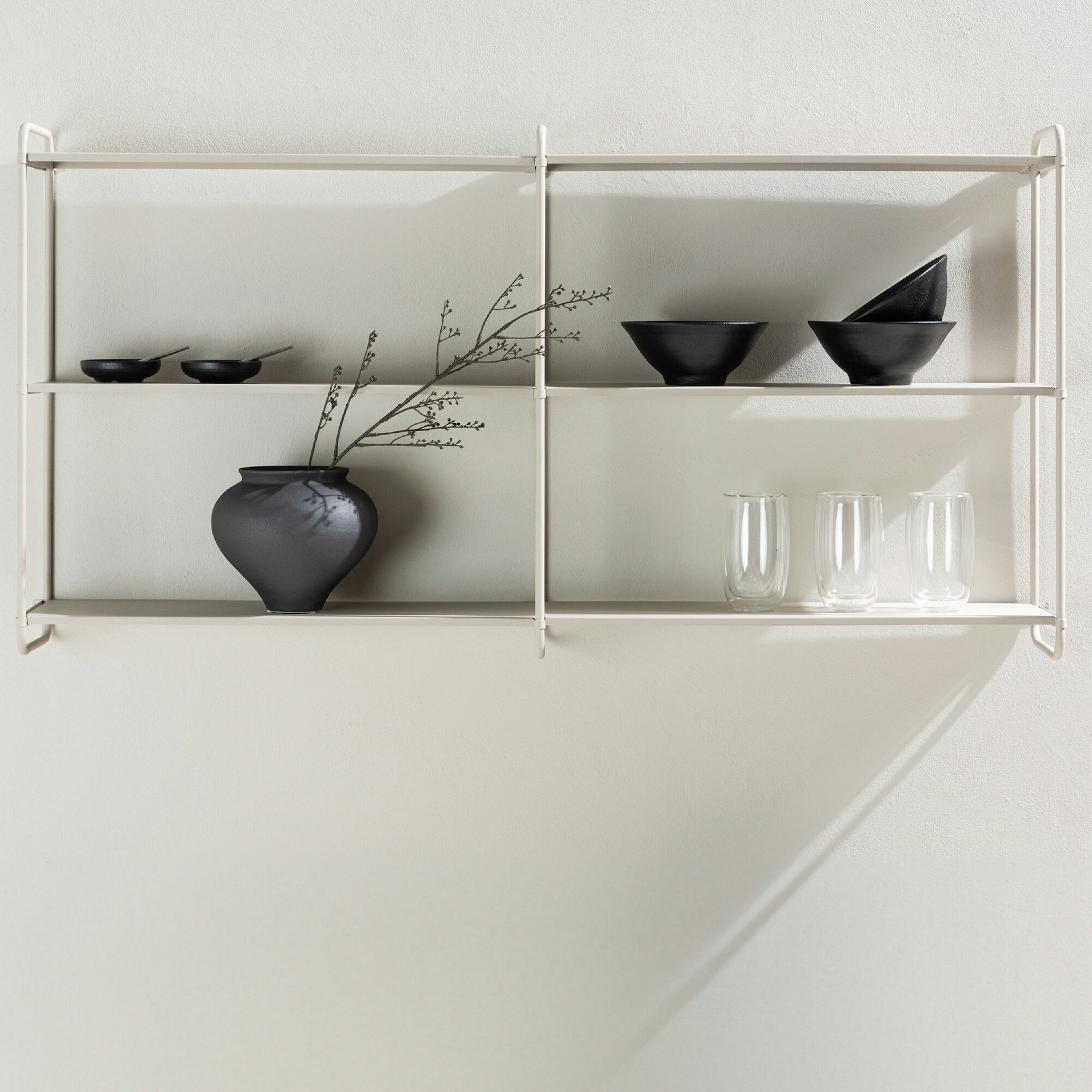 Tre hyllplan ger dig gott om utrymme att organisera och visa upp dina favoritprylar. Ordning och reda har aldrig varit så enkelt – från böcker till växter till personliga skatter, allt har sin plats på Lyon hyllan.