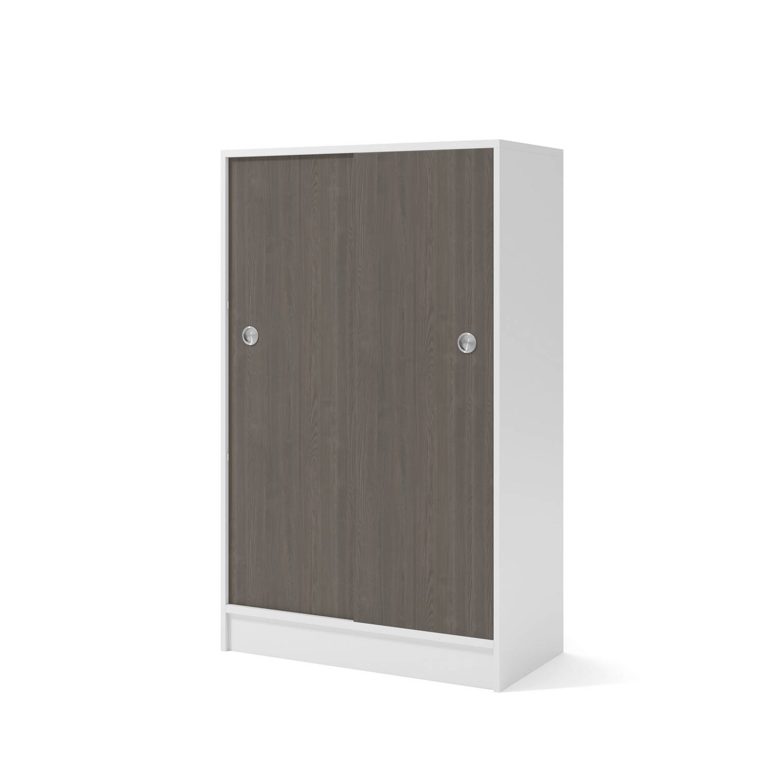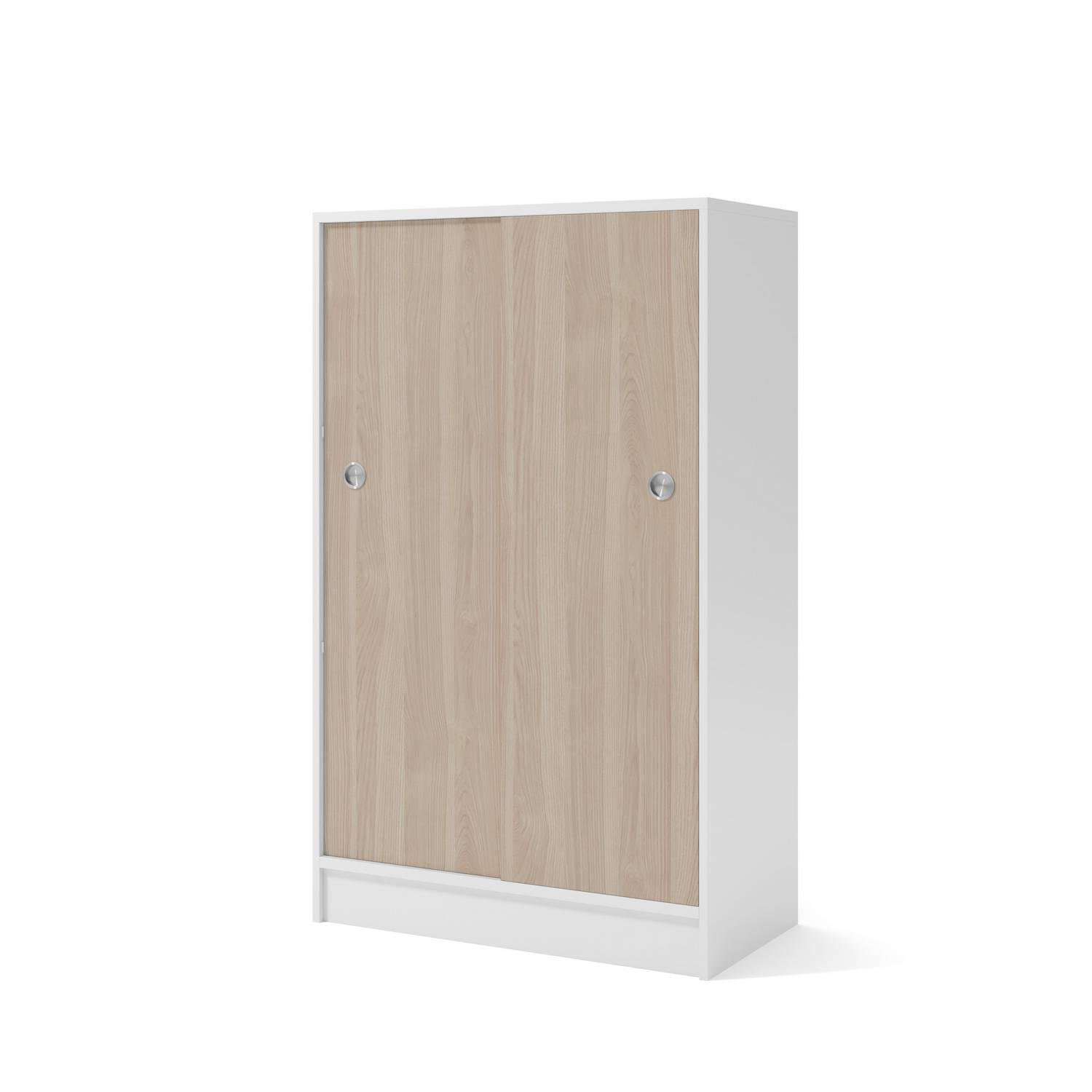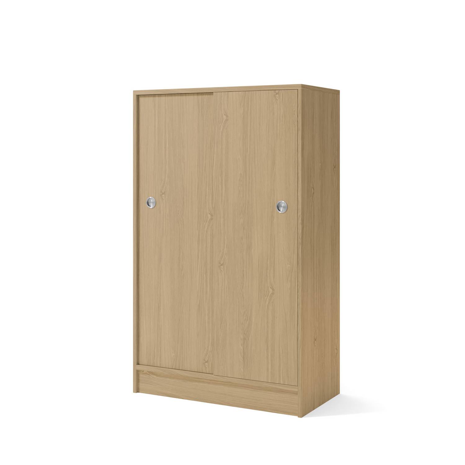 Förvaringsskåp med skjutdörrar tar mindre plats och är smidiga att öppna. Det här skåpet ger dig täckt förvaring över tre hyllplan. Levereras färdigmonterat.