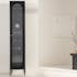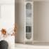 Skåpet är utrustat med fyra rymliga hyllplan, vilket ger dig gott om utrymme för att organisera. Dörren till skåpet är tillverkad av vågigt glas, vilket ger en subtil touch av textur och en unik visuell dimension till möbeln.