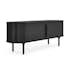 Ribborna är tillverkade i massiv trä och bordsskivan med trä-fanér ger en robust känsla och säkerställer att TV-bänken kommer att vara en del av ditt hem i år framöver.