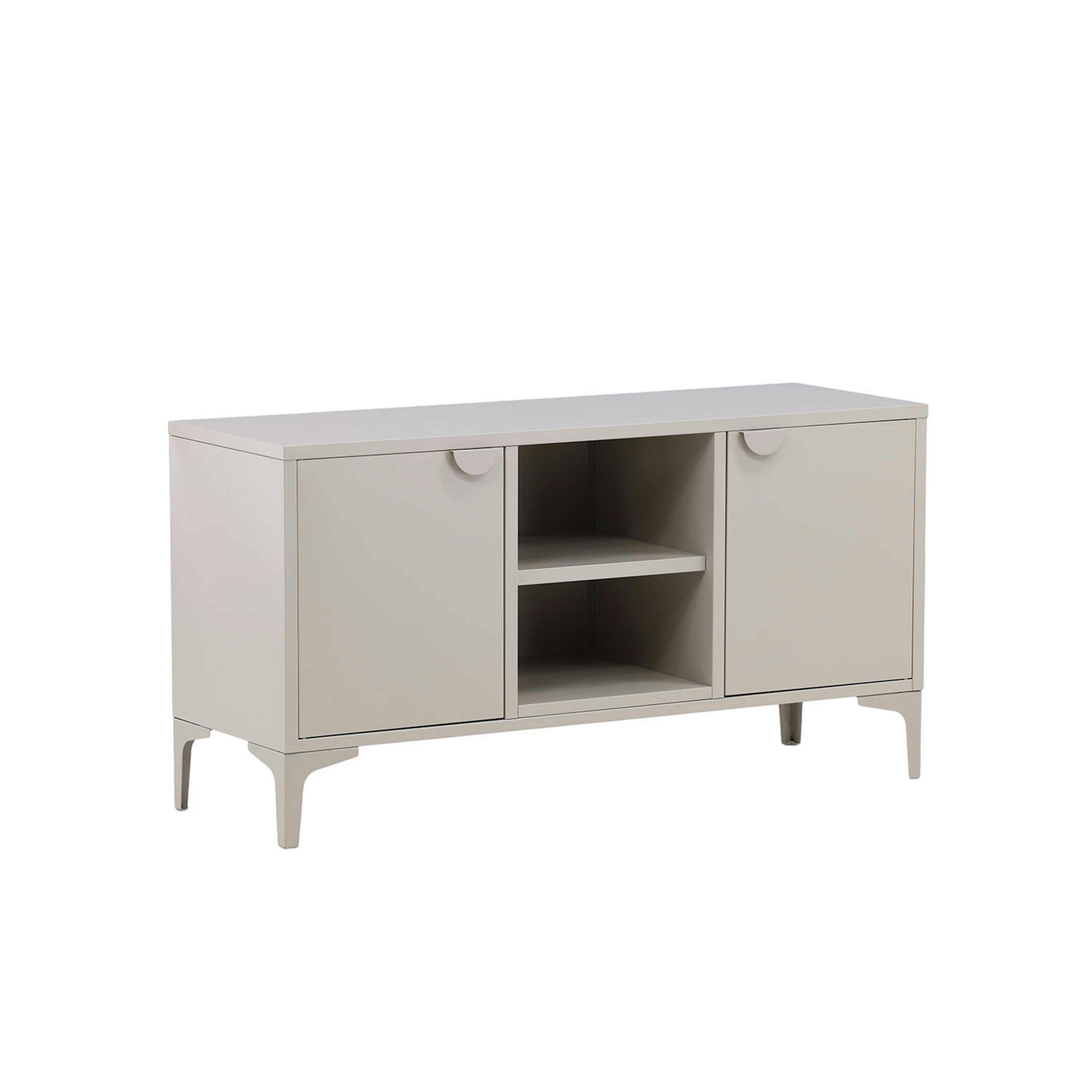 Tv-bänk från Venture Home. Den perfekta tv-bänken till det moderna och smarta hemmet. Den här bänken från serien Piring är tillverkad i stål och har ett praktiskt djup som möjliggör mycket förvaring. Bänken har två hyllplan med två luckor för dold förvaring och en mittdel med öppen förvaring - perfekt för stilrena detaljer såsom en modern vas eller en bok.