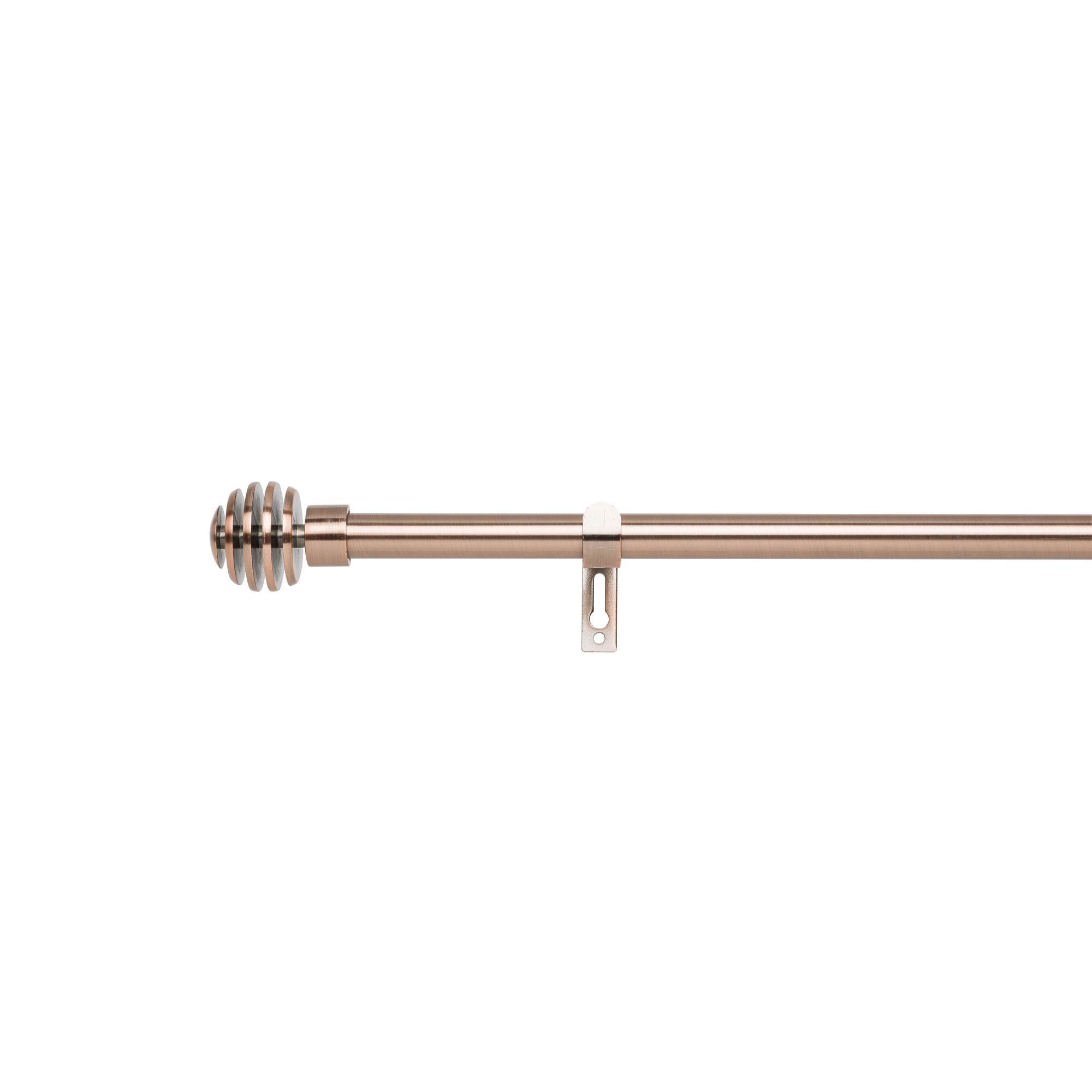 Dekorativt gardinstångset innehållande stång, änddekorer och 2 hållare. Hållarna är reglerbara från 10-15 cm och monteras på vägg med plugg och skruv.