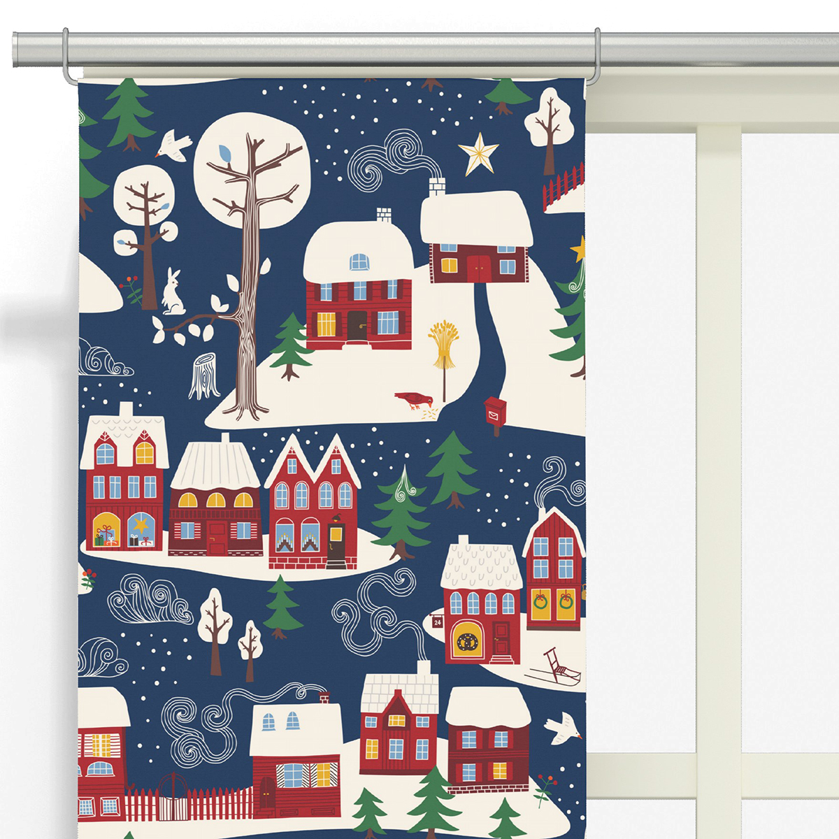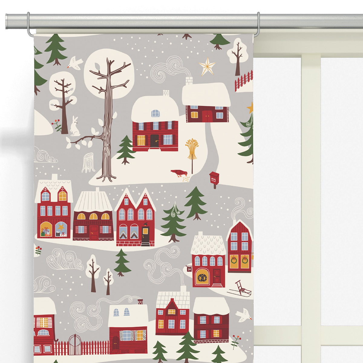 Panel Arvidssons Textil Vintertid 2-pack är en vacker julgardin. Vintertid är ett klassiskt vinter och jultyg med gamla traditionella hus.