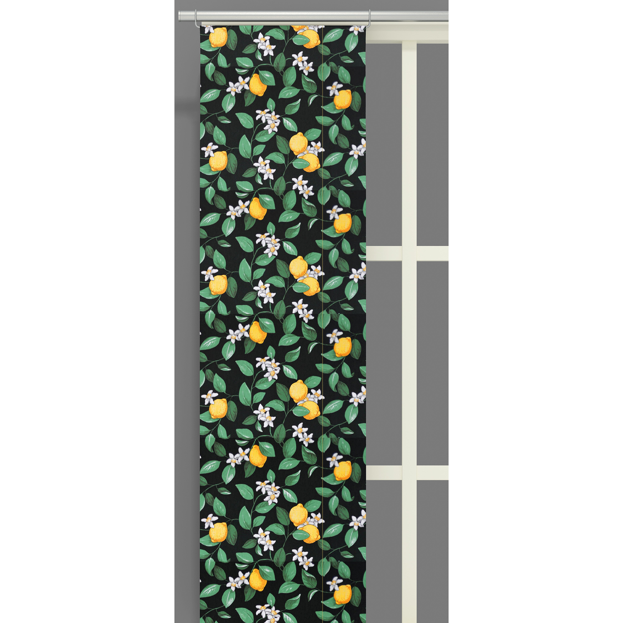 Panellängd Citronlycka från Arvidssons Textil. Svenskdesignat mönster av designer MiaLotta Arvidsson-Mars.
