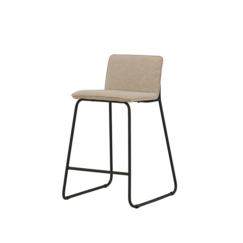 Med en nätt sits i stoppat, tyg av microfiber och integrerat fotstöd i svart stål är den här barstolen lika stilsäker som bekväm att sitta i. Möblera kring det höga matbordet eller vid bardisken i köket och förläng trivsamma stunder tillsammans!