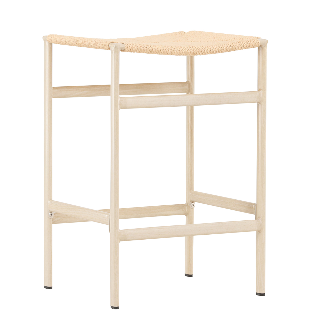 Polly barstolen är tillverkad av repmaterial, vilket ger en unik och modern touch samtidigt som den är bekväm att sitta i. Stålnederna ger stabilitet, vilket gör den lämplig för användning i både hemmets barområde och kommersiella miljöer.