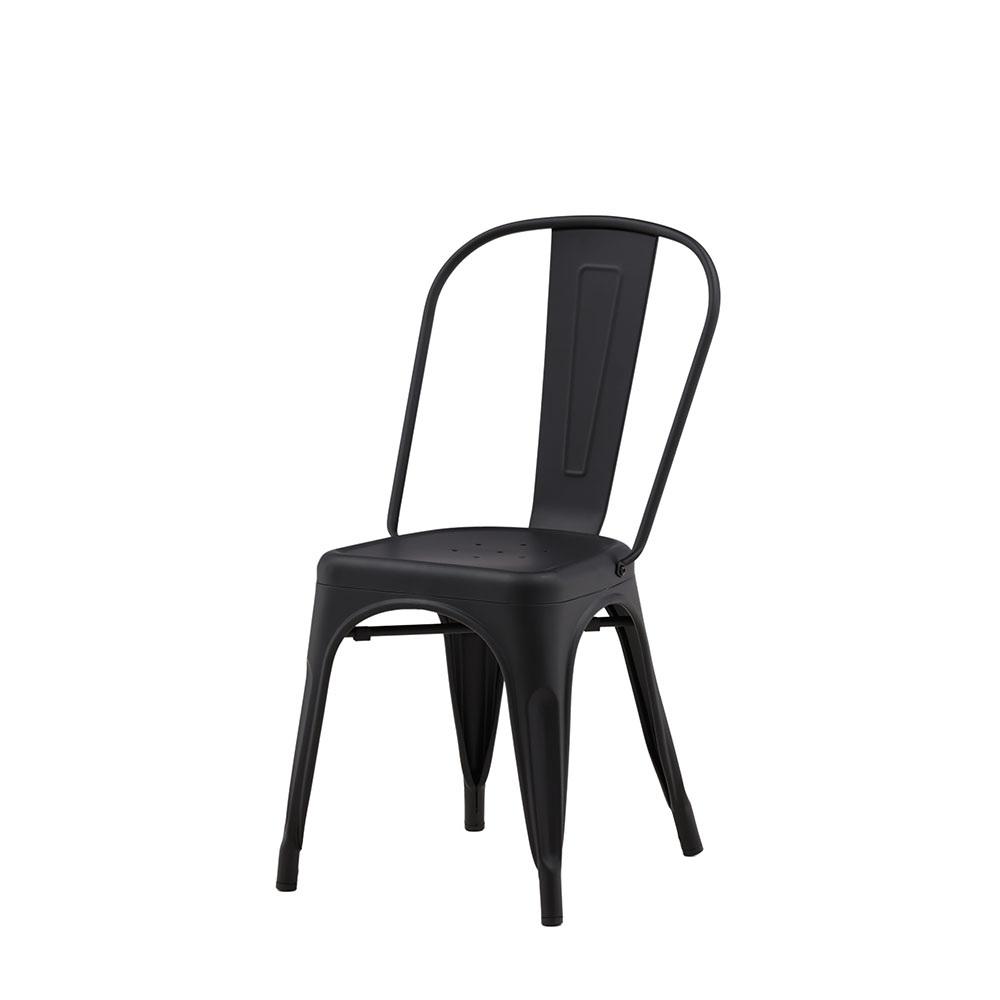 Den här matstolen har lätt utsvängda ben som följsamt möter sitsen och ryggstödet i en stilsäker utformning, genomgående tillverkad i svart metall. Matcha med ett snyggt matbord så får du en komplett matgrupp som står sig över tid!