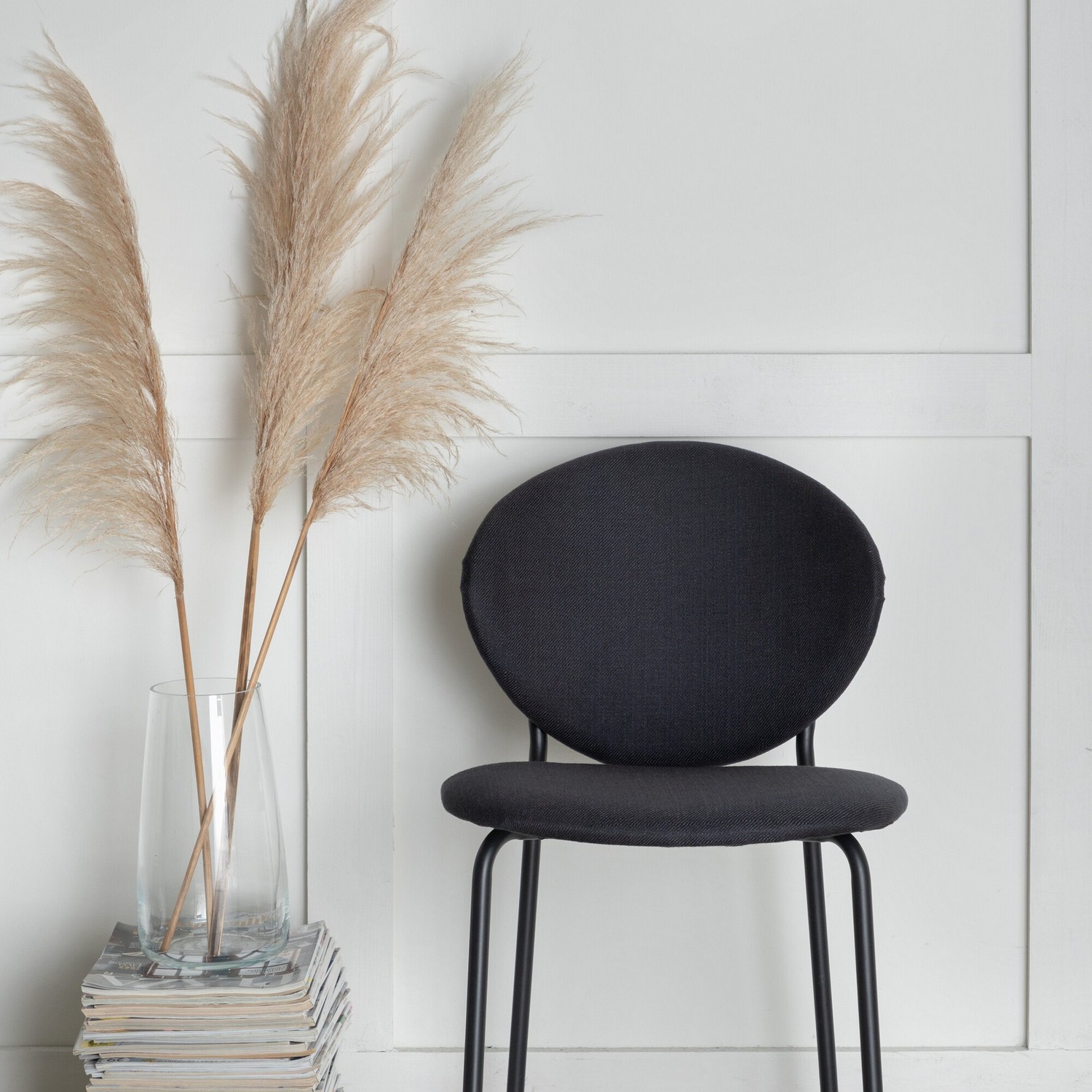 Vault från Venture Home är en matstol med stomme och ben i pulverlackerad metall. Stolen har snygg design med rund rygg. Rygg och sits består av stoppat polyestertyg.