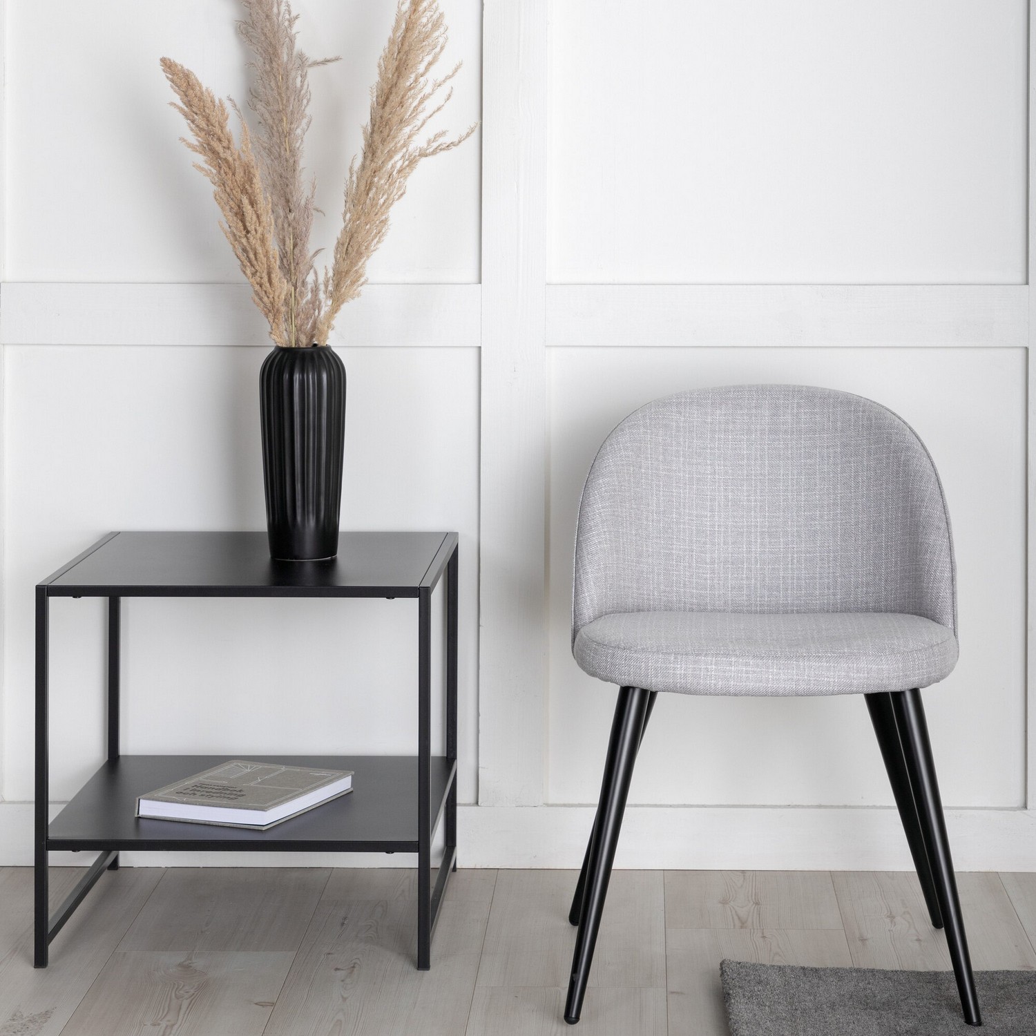 Velvet från Venture Home är en matstol med helklädd design, ben i pulverlackerad metall samt rundad rygg och sits i polyestertyg. Ryggen och sitsen har mjuk stoppning.