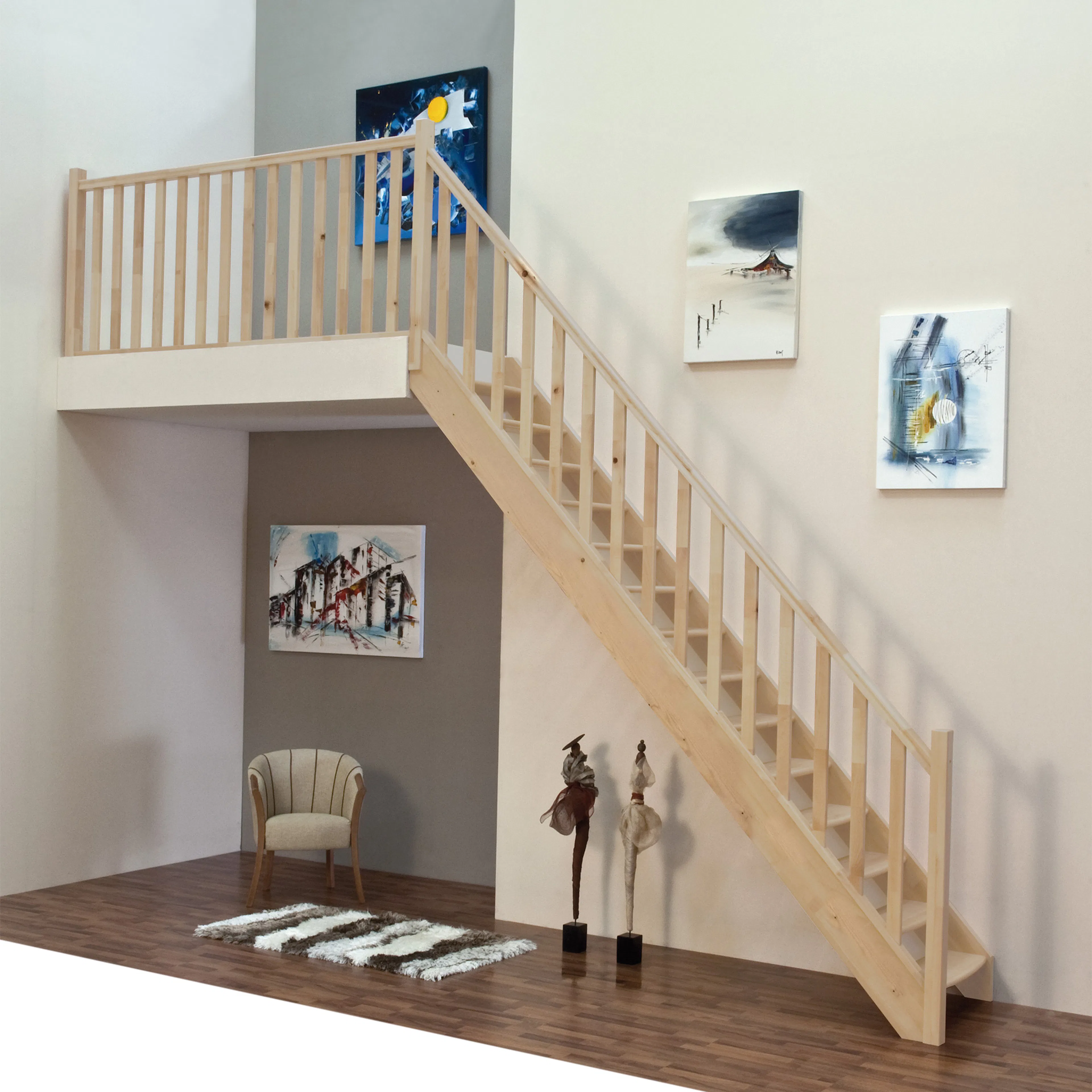 Enkel lofttrappa/våningstrappa i massiv obehandlad bok eller gran. Enkel och snabb montering utan specialverktyg. Minsta hålmått 850 x 2200 mm. Max takhöjd 3000 mm.