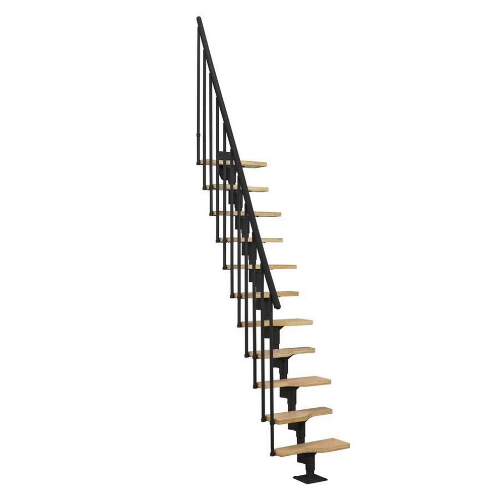 Den smarta formen på trappstegen gör Atlanta till en riktig platsbesparande trappa! Atlanta-trappan levereras med 11 multiplex boksteg och ett litet utrymmeskrävande (tar bara bara upp 137 cm i längden från väggen). Det är möjligt att ta bort ett eller flera trappsteg om en maximal golv-till-golvhöjd på 300 cm inte krävs. Varje trappsteg har en justerbar höjd på mellan 19 och 25 cm.