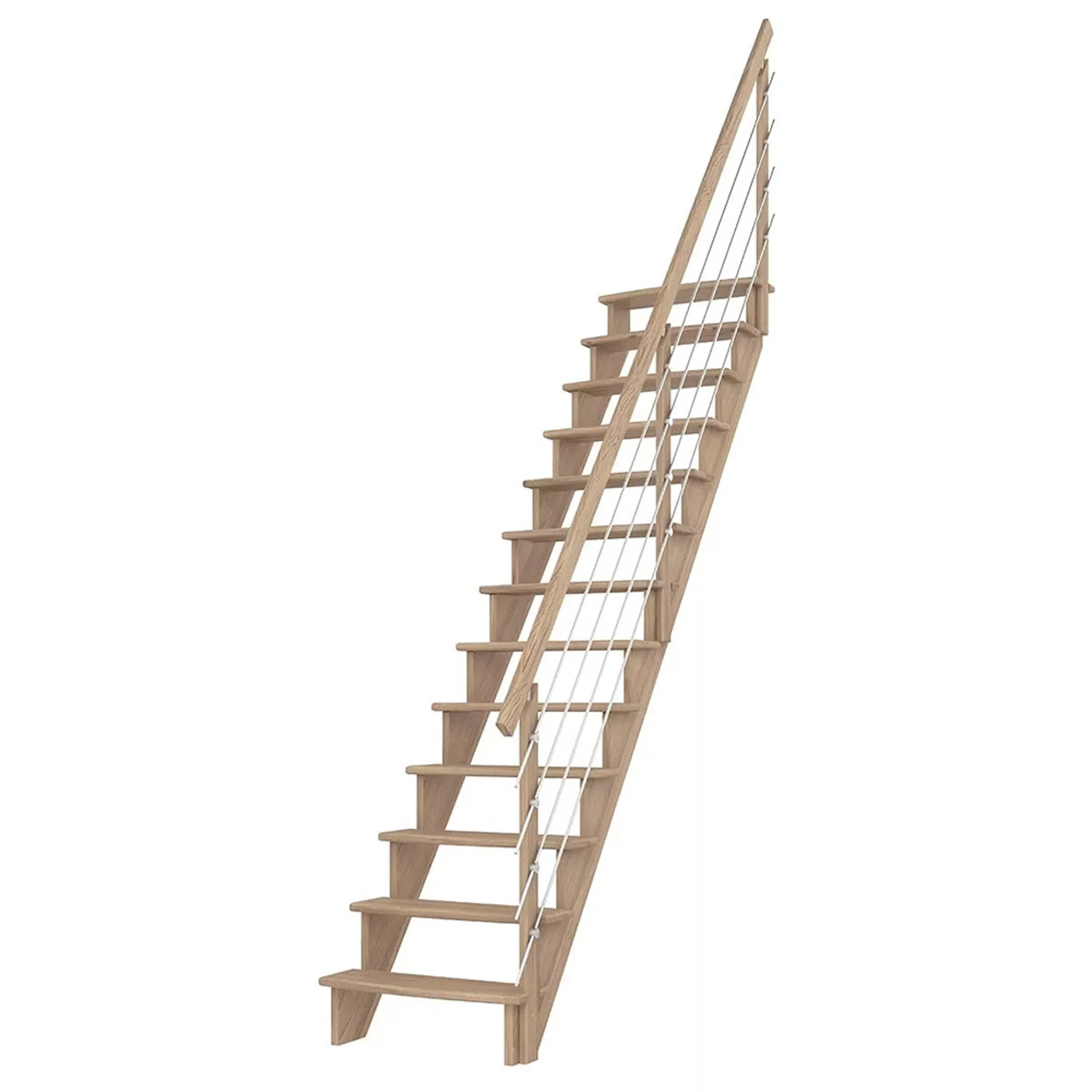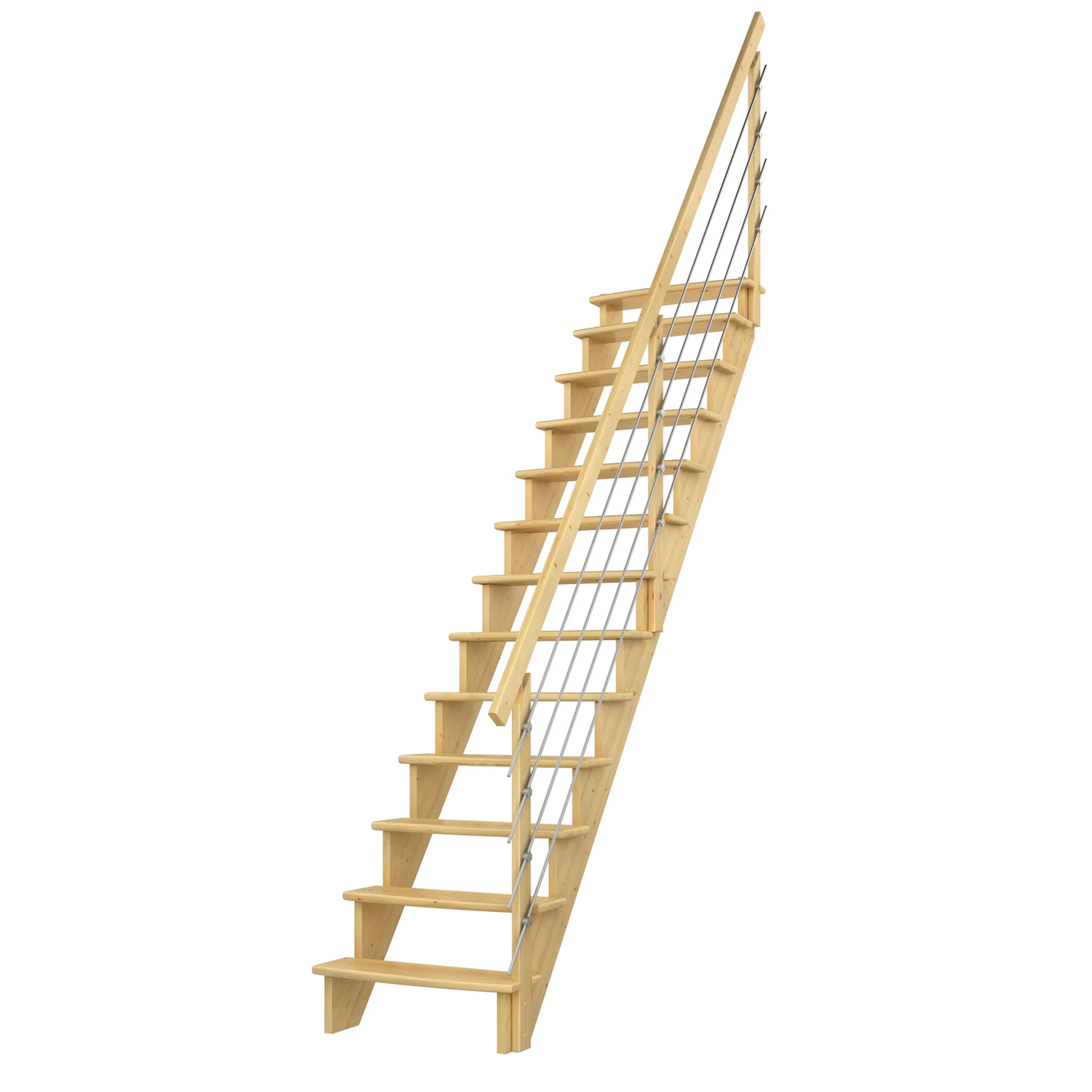 Spartrappa Dolle Lyon Rak med Horisontellt StålräckeObehandlad Furu, B: 750 mm, Räcke till vänster