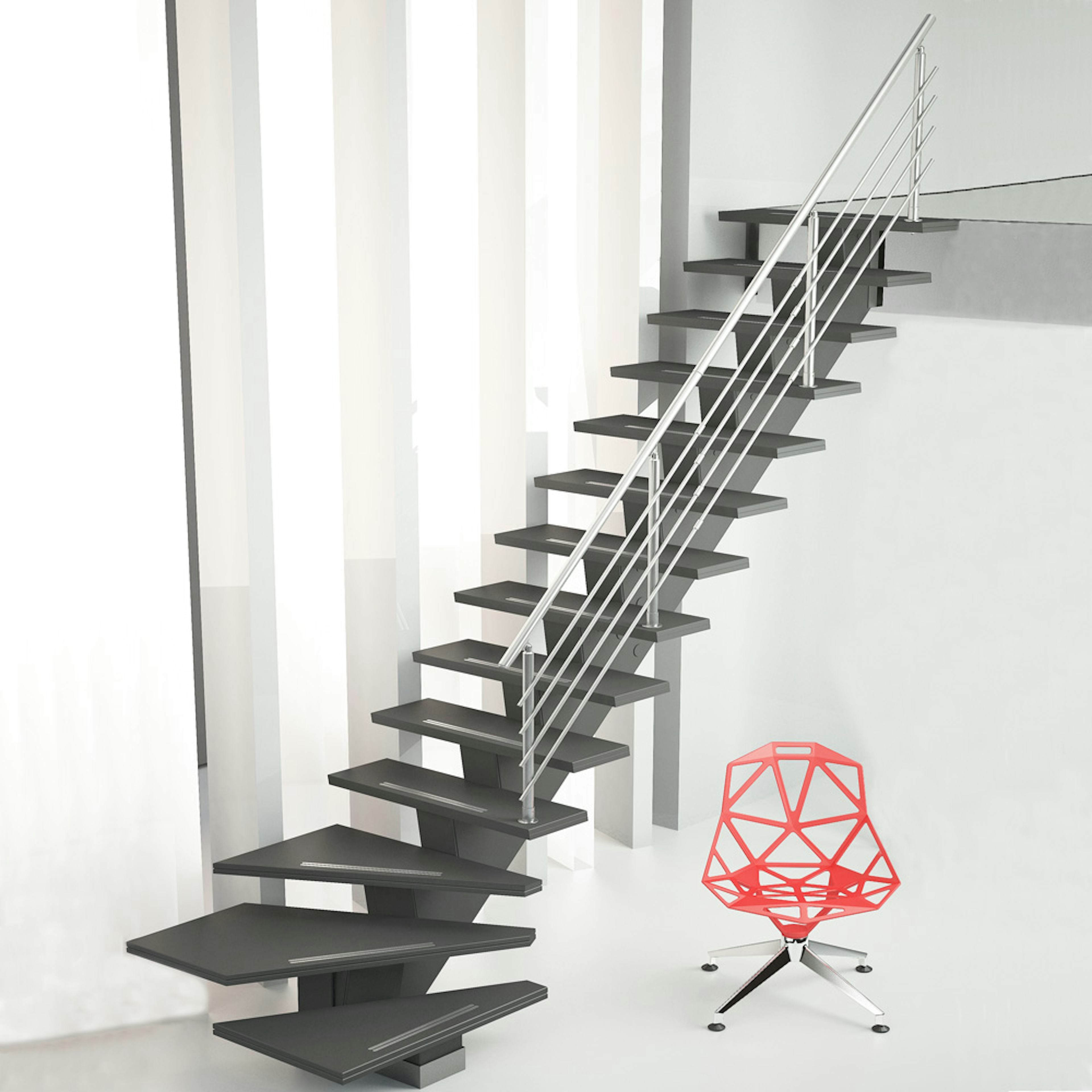 Spartrappa Gomera säljs utan räcke. Tillverkad av Valchromat som är en fukttålig genomfärgad träfiberskiva och betydligt hårdare än vanlig MDF. Trappan är oljad från fabrik.
