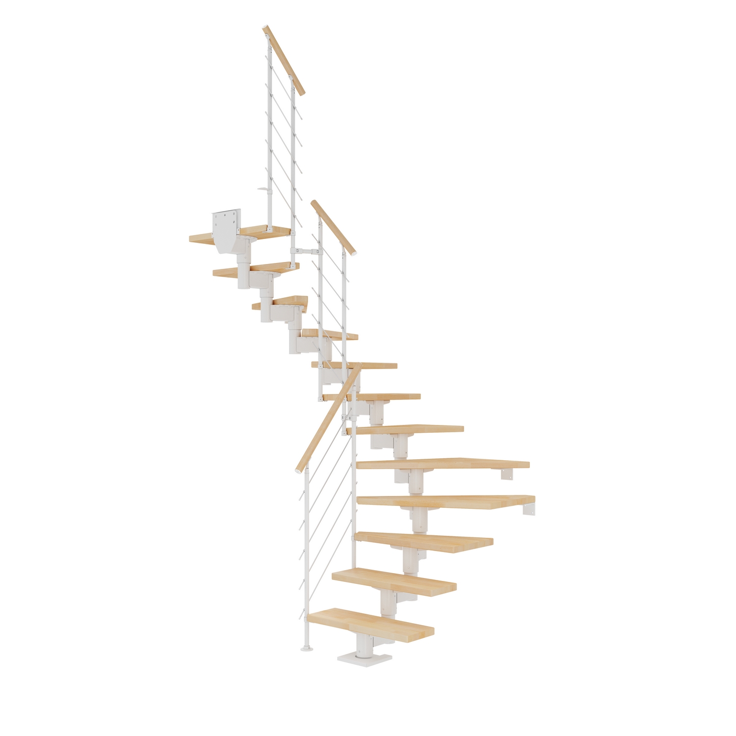 11-15 trappsteg i massivt trä ingår för CORK-trappor med en golv-till-golvhöjd på upp till 360 cm. När du installerar stegen med mer än 13 steg måste en stabiliserande stödstolpe installeras med. Detta ingår i paketet. För en lägre trappa tas överflödiga steg enkelt bort. Stegen har en hållbar och reptålig yta som är lätt att underhålla tack vare den halvblanka lacken. Höjden på varje steg kan ställas in mellan 18,5 och 22,5 cm.