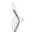 11-15 massiva trästeg ingår som ger en maximal golv-till-golvhöjd på 360 cm. Vid 13-15 steg är det nödvändigt att installera stödstolparna som ingår i paketet. Om golv-till-golvhöjden inte är nödvändig avlägsnas steg helt enkelt tills önskad höjd nås. Trappans ytor är otroligt slitstarka, tål repor och är lätta att underhålla tack vare den halvblanka ytan. Höjden på varje steg kan justeras mellan 18,5 och 22,5 cm.