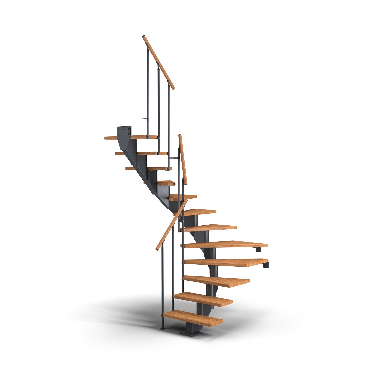 Skapa ett unikt intryck i ditt hem genom att anpassa trappformatet till rummets behov. Hamburg har upp till 14 steg som ger en maximal höjd från golv till golv på 322 cm. Varje steg har en justerbar höjd mellan 18,5 och 21,5 cm. Väggfästen ingår för att säkerställa hög stabilitet i trappan. Breda och djupa trappsteg i kombination med ett stabilt skyddsräcke gör trappan otroligt säker och bekväm att använda.