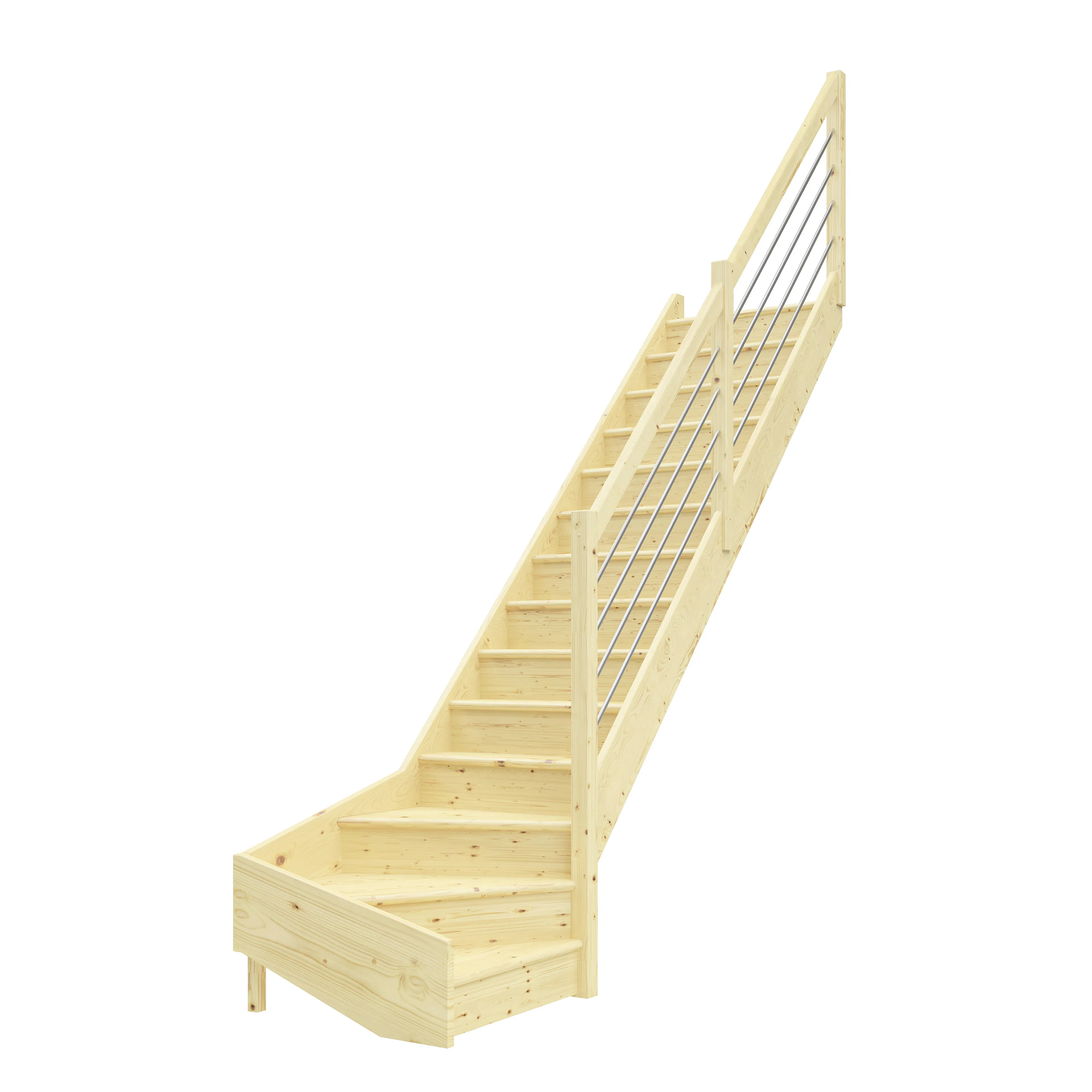 Paris är en platsbesparande trappa från Dolle med räcke som har 16 mm stålrör som ger hög säkerhet. Trappan är tillverkad i tidlös och enkel design med 14 djupa steg som garanterar hög komfort. Trappan finns i rakt och 1/4 svängt utförande samt med eller utan sättsteg så att du kan välja exakt vad som passar ditt hem. Trappan kan höjdjusteras genom att kapa vangstyckena. Trappan är testad till en max belastning på 150 kg.