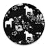 Bricka Kurbits från Arvidssons Textil. Svenskdesignat mönster med dalahästar och kurbitsmotiv. Tillverkad i Sverige.