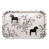 Bricka från Arvidssons Textil. Svenskdesignat mönster med dalahästar och kurbitsmotiv. Tillverkad i Sverige.