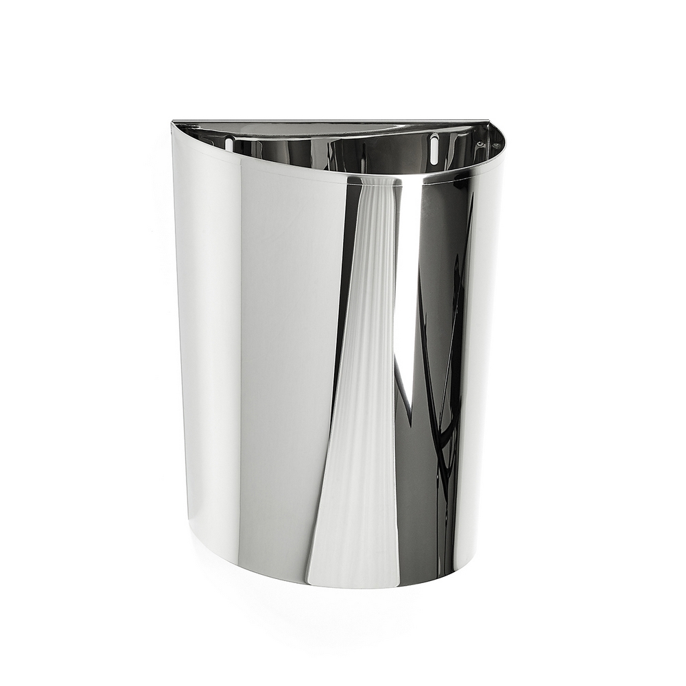 Papperskorg 50 från Habo är en elegant papperskorg av rostfri plåt som levereras med väggfäste för montage på vägg eller på skåpslucka.