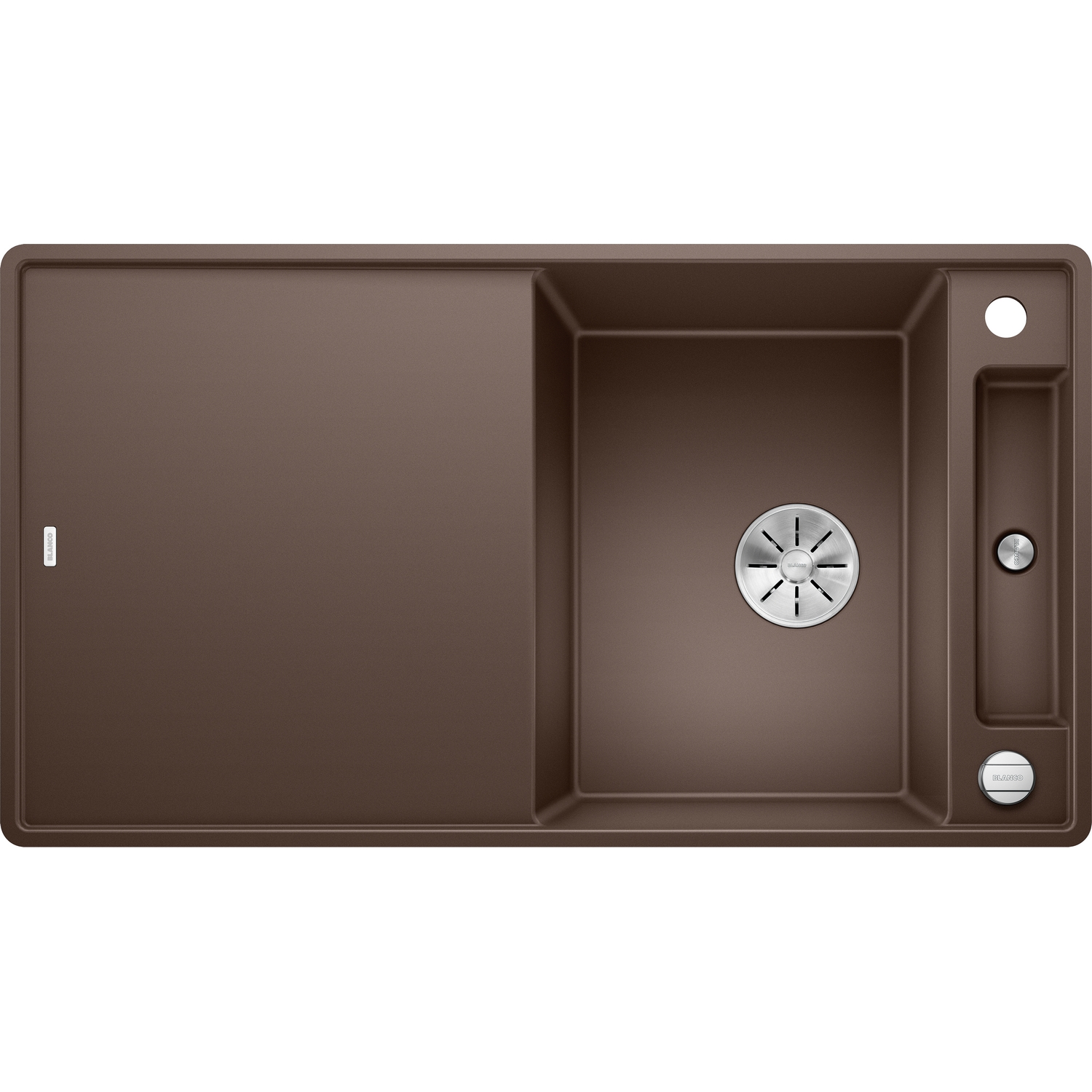 Diskbänk Blanco Axia III 5 S-F InFino är en funktionell diskbänk i ergonomisk utformning med smarta tillbehör. Diskbänken är vändbar och skärbräda ingår. Den har ett excenterreglage för öppning och stängning av korgventil samt ett breddavlopp. Diskbänken har en smakfullt integrerat InFino-korgventil i det patenterade, innovativa InFino-avloppssystemet.