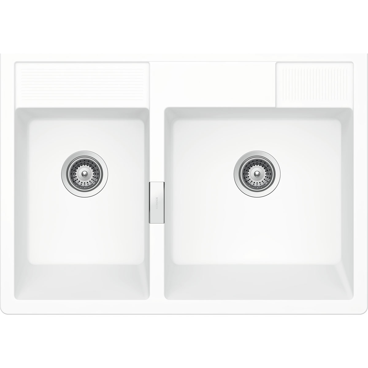 - Möjlighet till hål för blandare, fyrkantigt bräddavlopp och korgventil i rostfritt stål