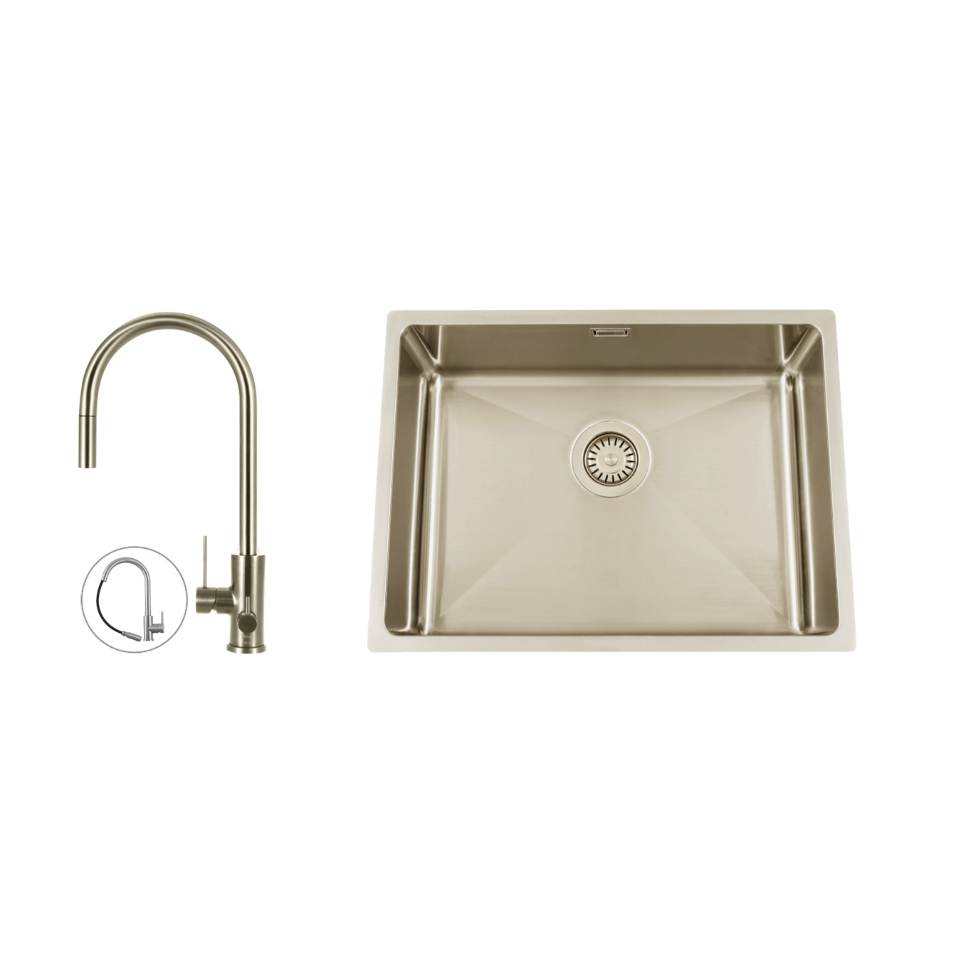 Disklåda Nordic Tech Titan 530 X med Köksblandare Steel Accent D är en kraftig disklåda i 1,2 mm rostfritt stål med snyggt borstad yta för min 600 mm skåp i kombination med en stilren köksblandare från Primy.