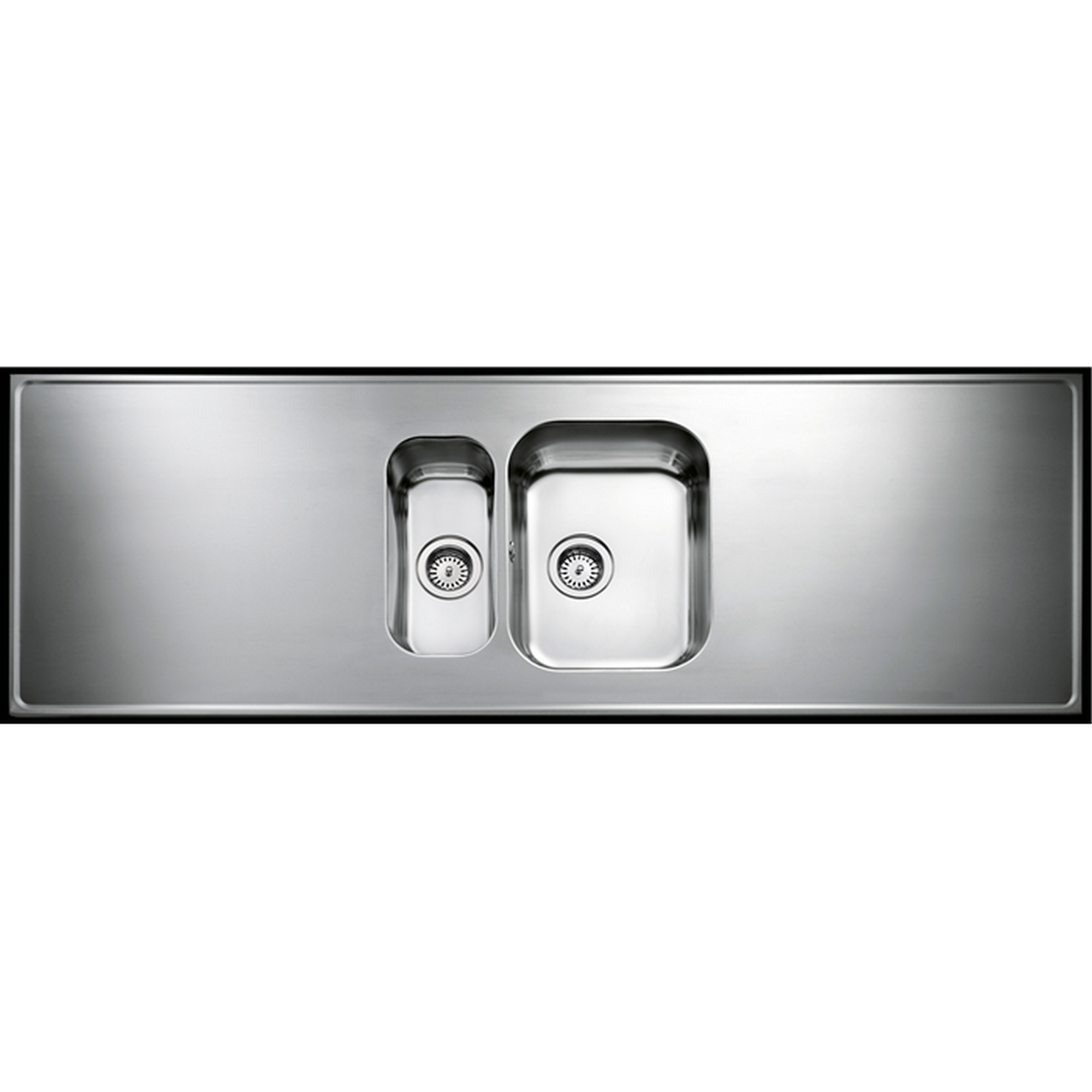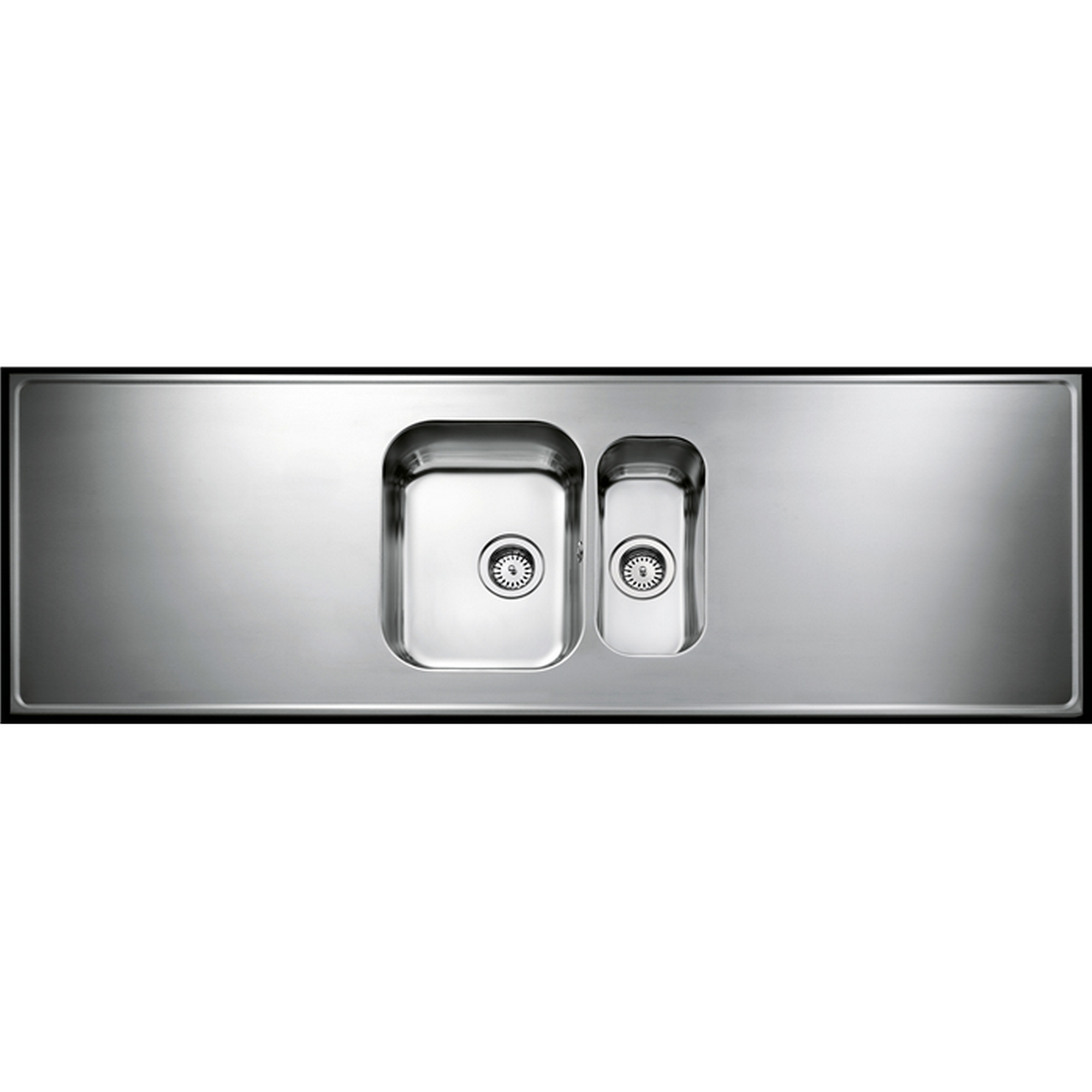 Heltäckande Diskbänk Atlantic G 600 med Korgventil Centrerad från Intra är en elegant, heltäckande diskbänk med en stor och en liten disklåda. Disklådorna är centrerade och diskbänken levereras med två korgventiler och ett kranhål. Dessutom har den maunella ventiler, bräddavlopp i den ena lådan och vattenlås.