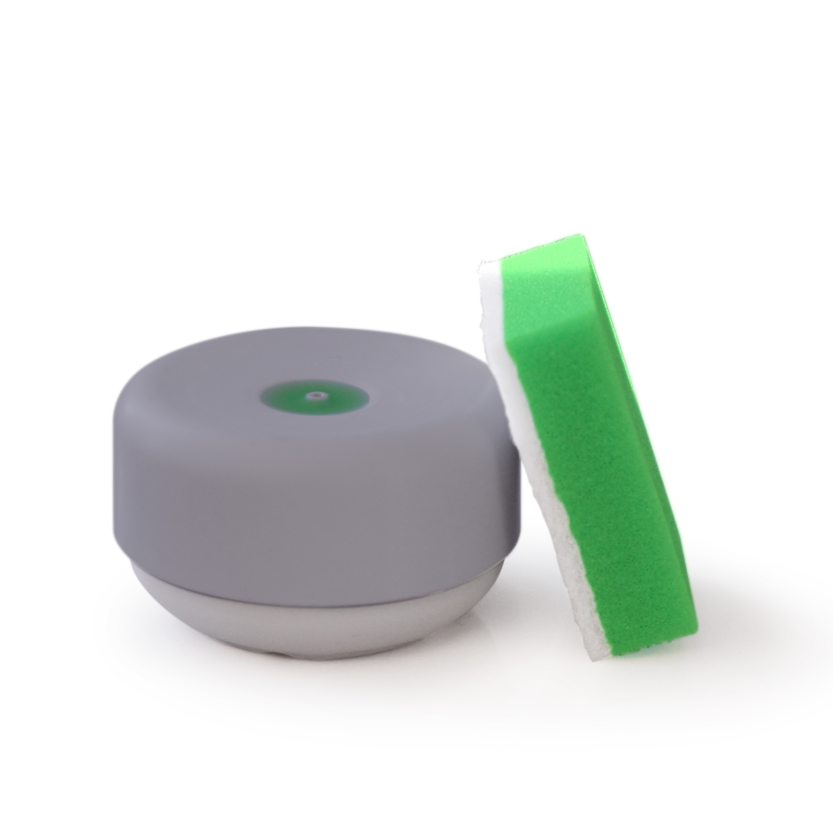 Tryck diskborsten eller disksvampen på locket och precis rätt mängd diskmedel doseras på diskborsten eller svampen. Endast en hand behövs vid användning. Diskmedelspumpen står stadigt på plats med den halkfria basen i silikon.