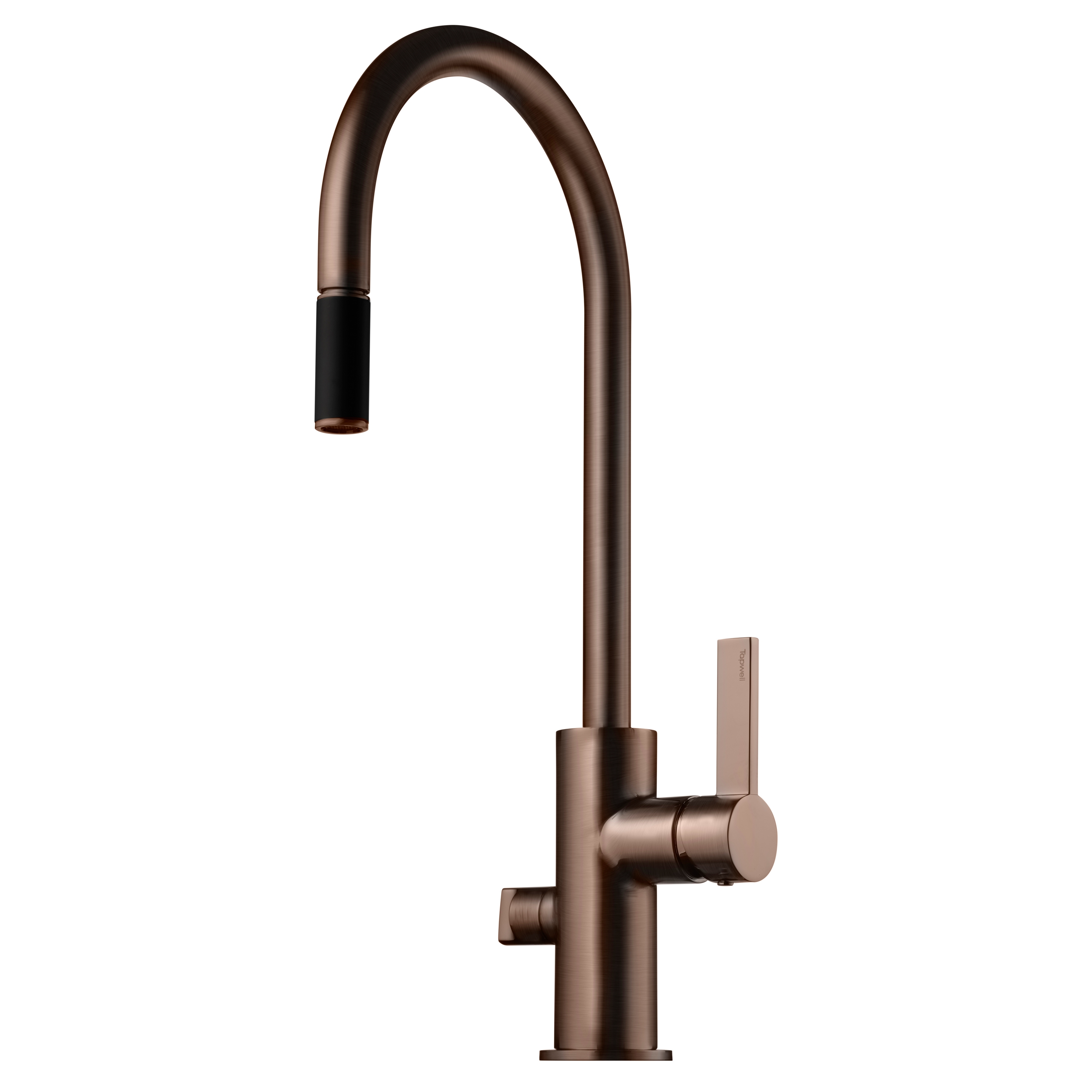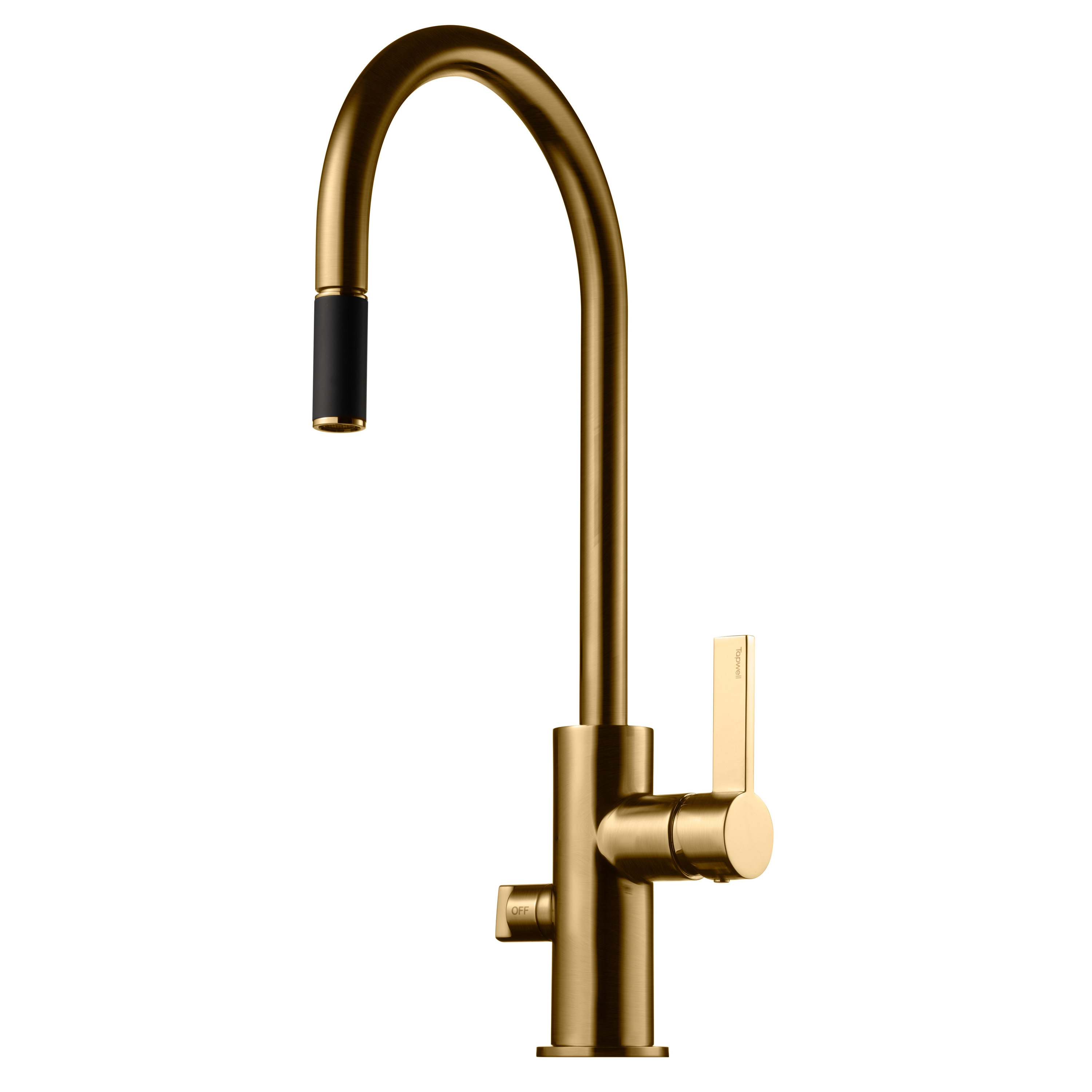 Köksblandare Tapwell Arman ARM885 med diskmaskinsavstängning och utdragbar dusch är en ettgreppsblandare med cylindriska former och stilren design som smälter in i de flesta kök. Den höga, svängbara och utdragbara svarta pipen underlättar arbetet i köket. Pipens svängradie går att begränsa till mellan 60°-270°, med 30° intervaller.