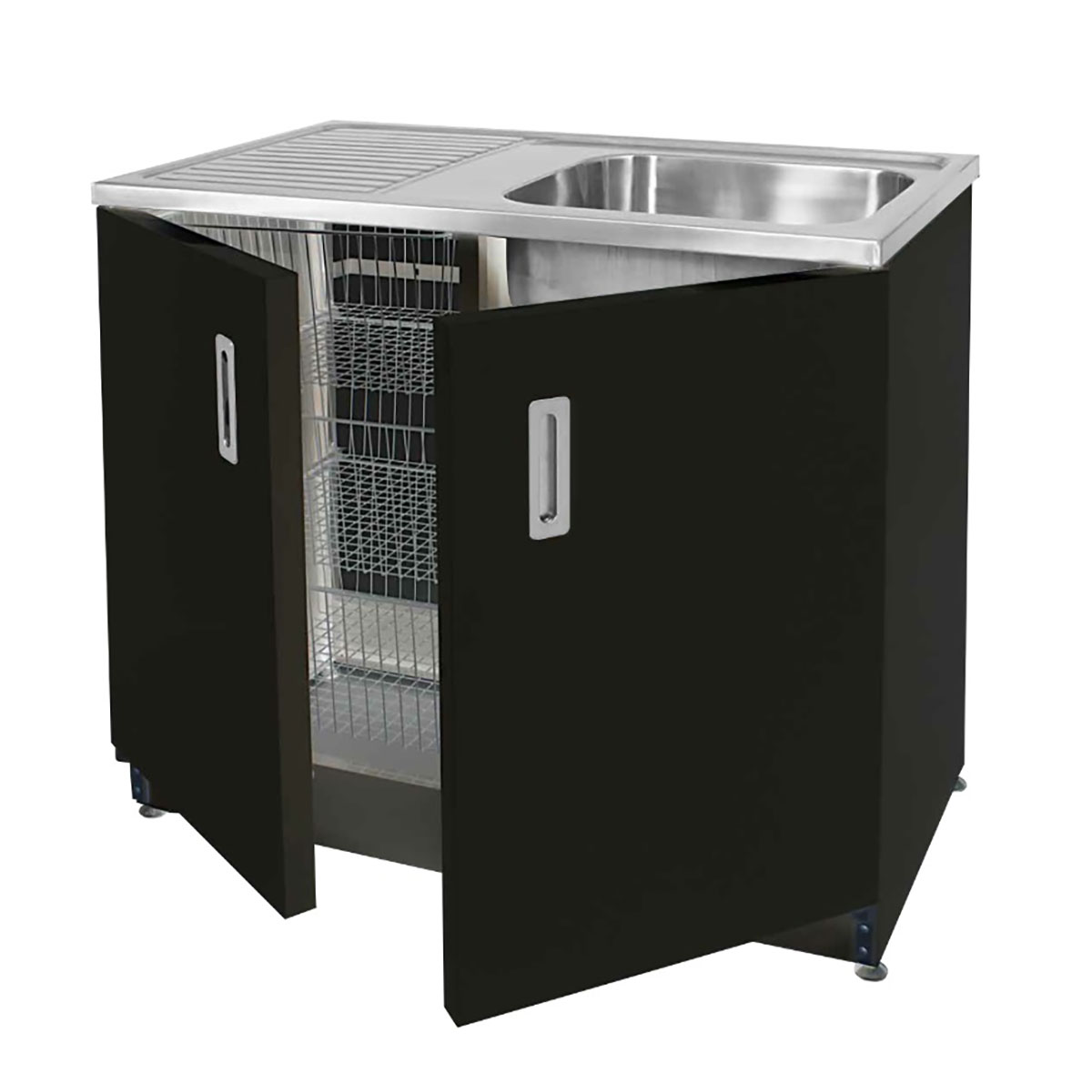 Tvättbänk Vilan Stainless VTB 10 är en vändbar tvättbänk med 2 st dörrar, 3 st trådkorgar, hyllor i dörr och avloppssats med tvättmaskinsanslutning. Tvättbänken är utrustad med stor diskho och har justerbara fötter +/- 15 mm.