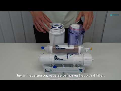 - Finfiltret på 5 µm avlägsnar de flesta fasta partiklar, t.ex. sediment och rost, från vattnet och skyddar samtidigt filtren nedströms från igensättning.