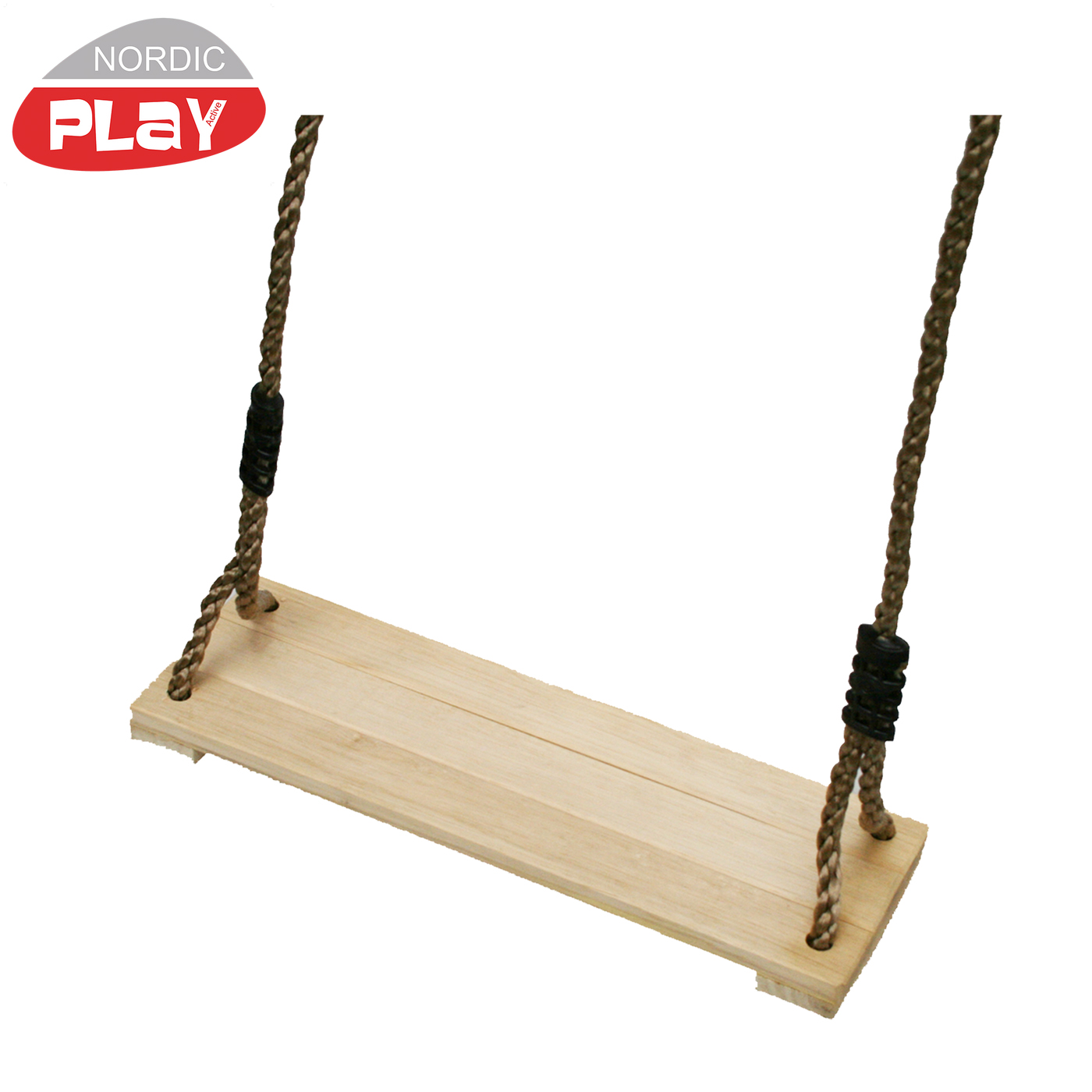 Vanligt gungsäte i trä från Nordic Play. Levereras komplett inklusive justerbara rep, upphängd i galvaniserade runda ringar. Levereras exklusive krokar.