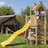 Mysig och hållbar, dina små kommer att känna sig som hemma i Jungle Teepee. Denna kompakta klätterställning för barn stjäl showen, inte trädgården. Sök lä på lekplatsen, klättra på en klättervägg eller lutande stege, eller gör en fest vid picknickbordet. Jungle Teepee ger den rustika landskapslooken till din bakgård. Mellan det medföljande picknickbordet, sandlådan, klätterväggen, ratten, teleskopet och mer tror vi att vi har hittat definitionen av roligt. Eftersom säkerheten är av största vikt innehåller denna barnklätterställning även många smarta detaljer som jordankare, tvådelade bultkåpor, säkerhetshandtag och huvudskydd.