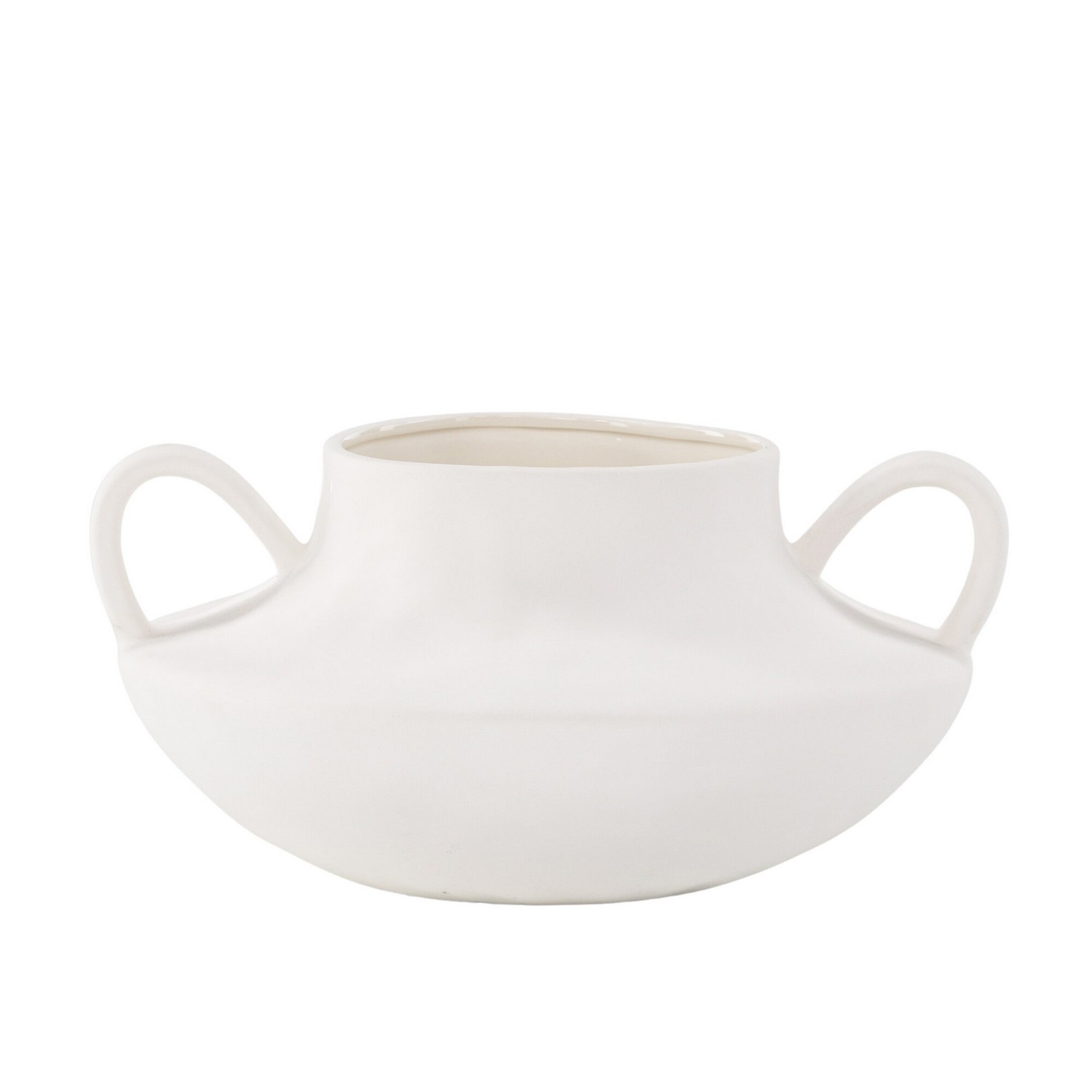 Med sin släta runda design och karakteristiska öglor på vardera sida kombinerar Holda form och funktion på ett sömlöst sätt. Den svarta ytan strålar elegans och gör den till en mångsidig tillskott till alla inredningsstilar. Plantera dina favoritblommor i Holda och placera den på bordet för att visa upp dess unika charm. Oavsett om den används som en fristående kruka eller som en del av en samling, ger Holda en touch av modernitet till ditt hem. Höj din inredning med denna stilrena svarta kruka och låt Holda vara det perfekta kärl för dina botaniska skönheter.