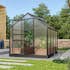 Venus-serien finns i olika storlekar från 5 m² till 7,5 m². Beroende på storlek levereras växthuset med ett eller två ventilationsfönster i taket, vilket ger dig möjlighet till god ventilation i växthuset. Venus har en lättglidande skjutdörr, vilket säkerställer otroligt enkel åtkomst till växthuset. Glaset kan levereras som antingen 3 mm delat växthusglas eller 4 mm polykarbonat.