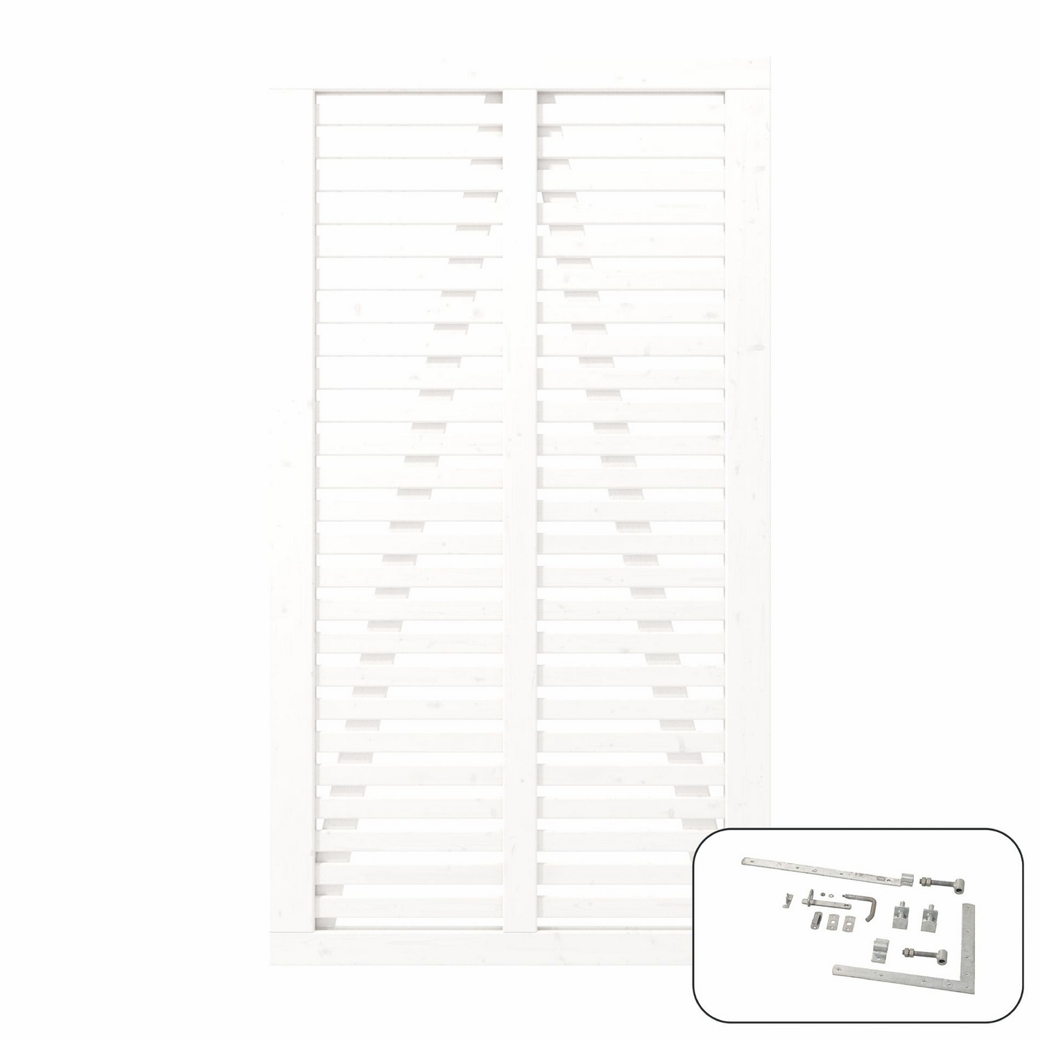 Skapa harmoni i din utemiljö med denna vackra trädgårdsgrind i FSC-certifierat trä. De smala listerna har en kamouflerande effekt och begränsar insynen utan att skärma av den helt. Samtidigt skapar samspelet mellan vertikala och horisontella lister en vacker persienneffekt som för tankarna till de vackra japanska vikväggarna.