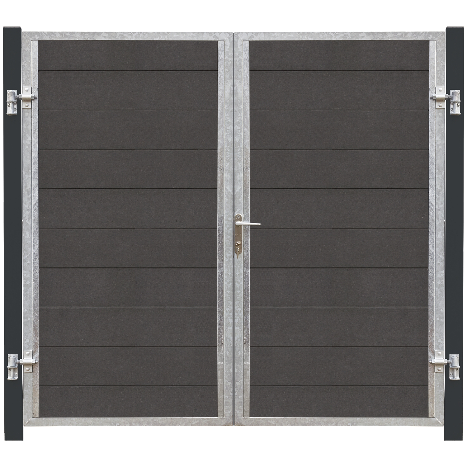 Information- Stålstolpar: 8x8x268 cm- Grindram: 2 mm varmgalvaniserad stål 30x40 mm- Kompositplankor 25x180 mm Inklusive rostfri låskista med 3 nycklar, 4-stift cylinder och tillbehör.