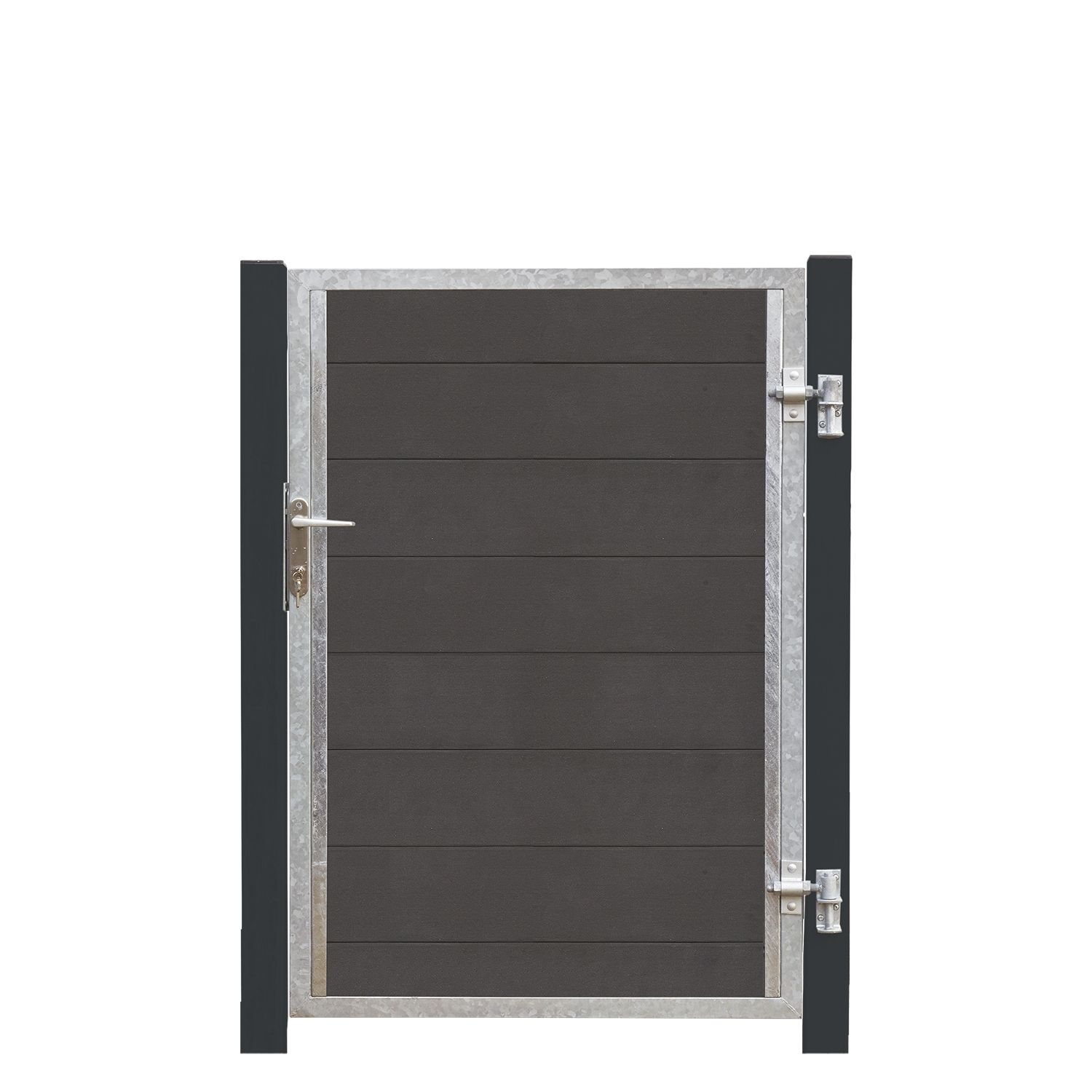 Information- Stålstolpar: 8x8x236 cm- Grindram: 2 mm varmgalvaniserad stål 30x40 mm- Kompositplankor 25x180 mm Inklusive rostfri låskista med 3 nycklar, 4-stift cylinder och tillbehör.