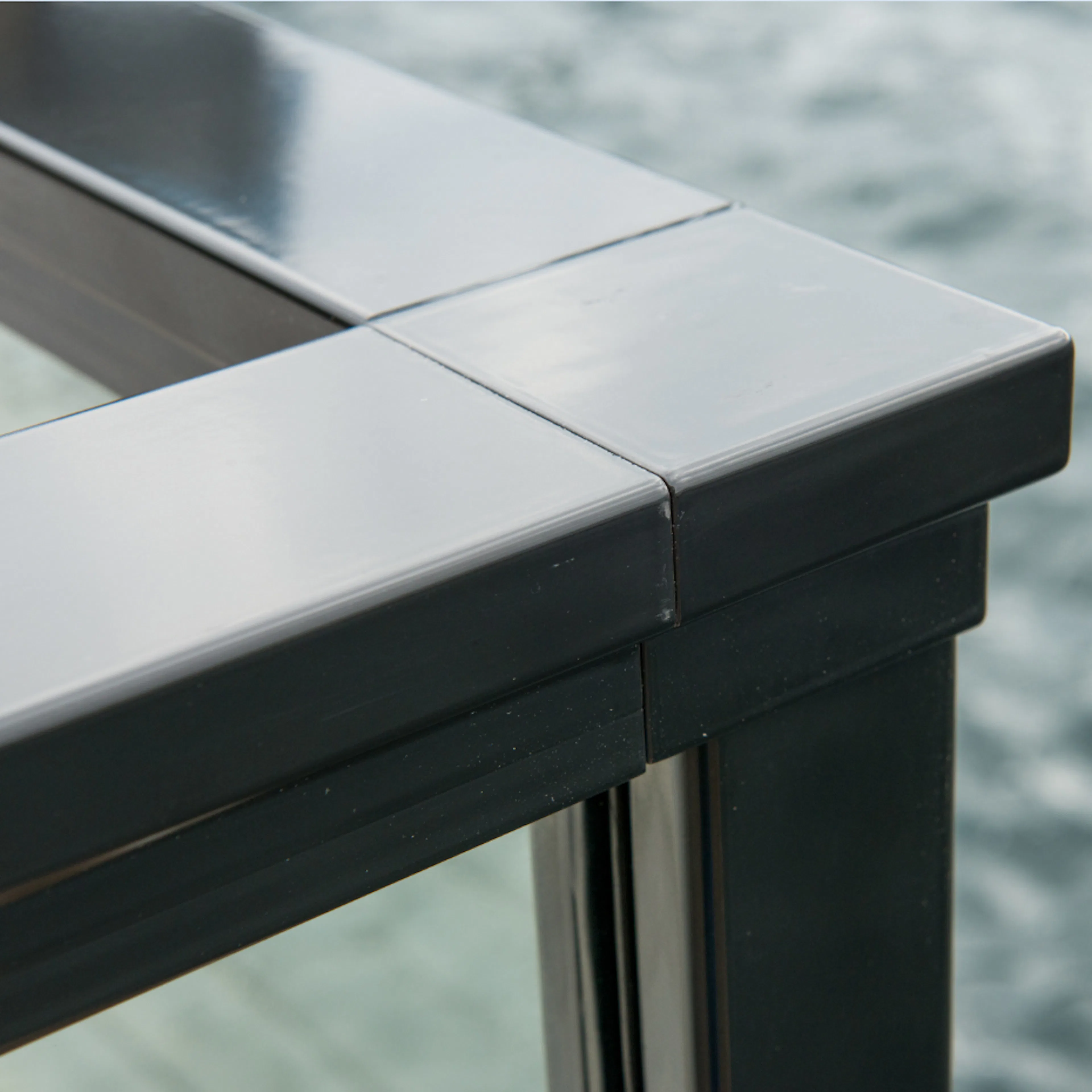 Novorooms aluminiumräcken är fullständigt underhållsfria, enkla att montera och har pulverlackerade komponenter. Kan fås i standardfärgerna vit, grått och svart. Aluminiumräcket är dimensionerat i enlighet med lastkategori A, B, C1, C2, C3, C4 och D med en vindlast om 1KN per kvadratmeter. Glasen ifrån Novoroom är 8,76 mm laminerade säkerhetsglas. Ett laminerat säkerhetsglas innebär att två glas limmas ihop med hjälp av en folie så att glasrutan inte faller sönder vid sprickbildning. Standard höjd är 1100 mm enligt byggnormer. Dimensionerna på stolpfoten är 100x100 mm.