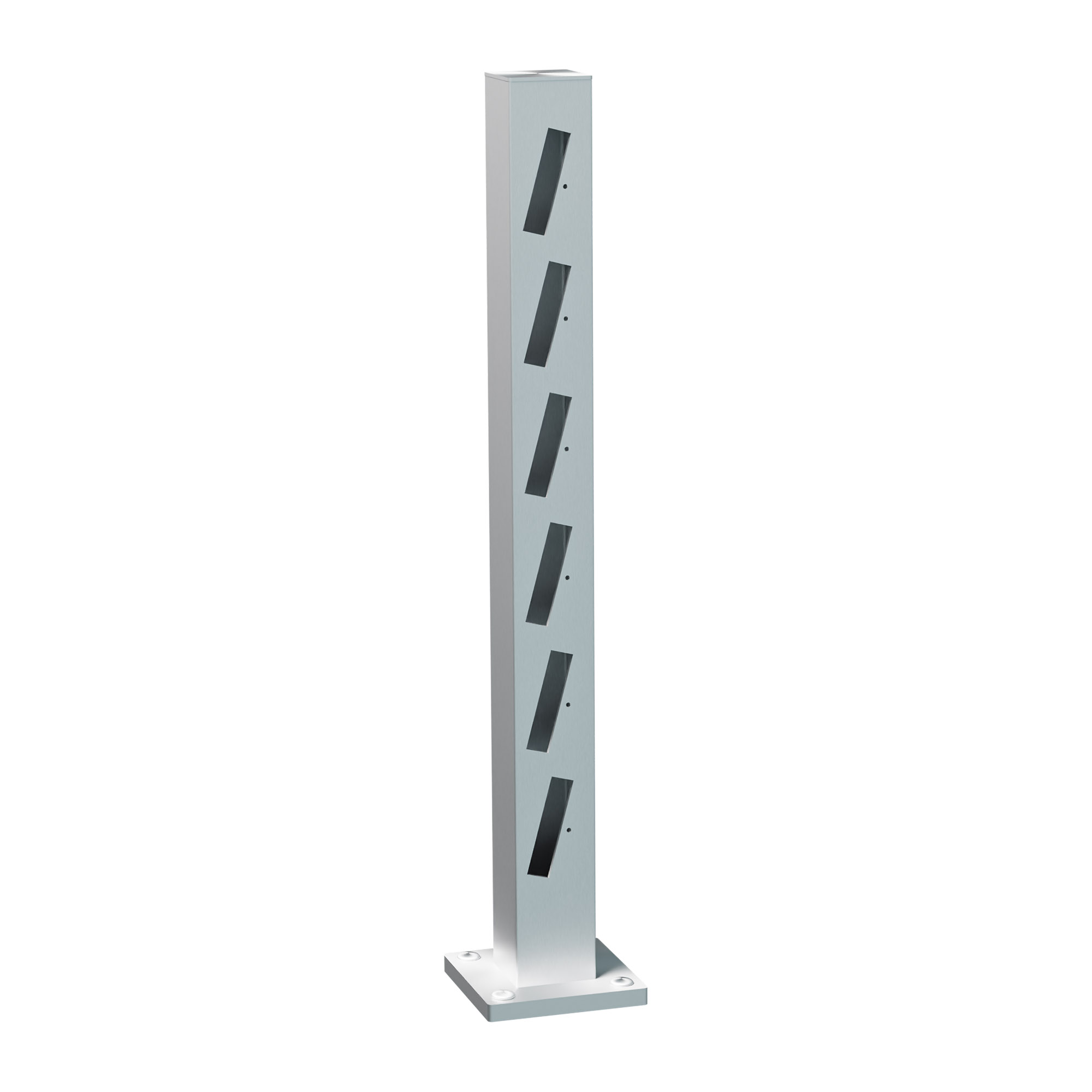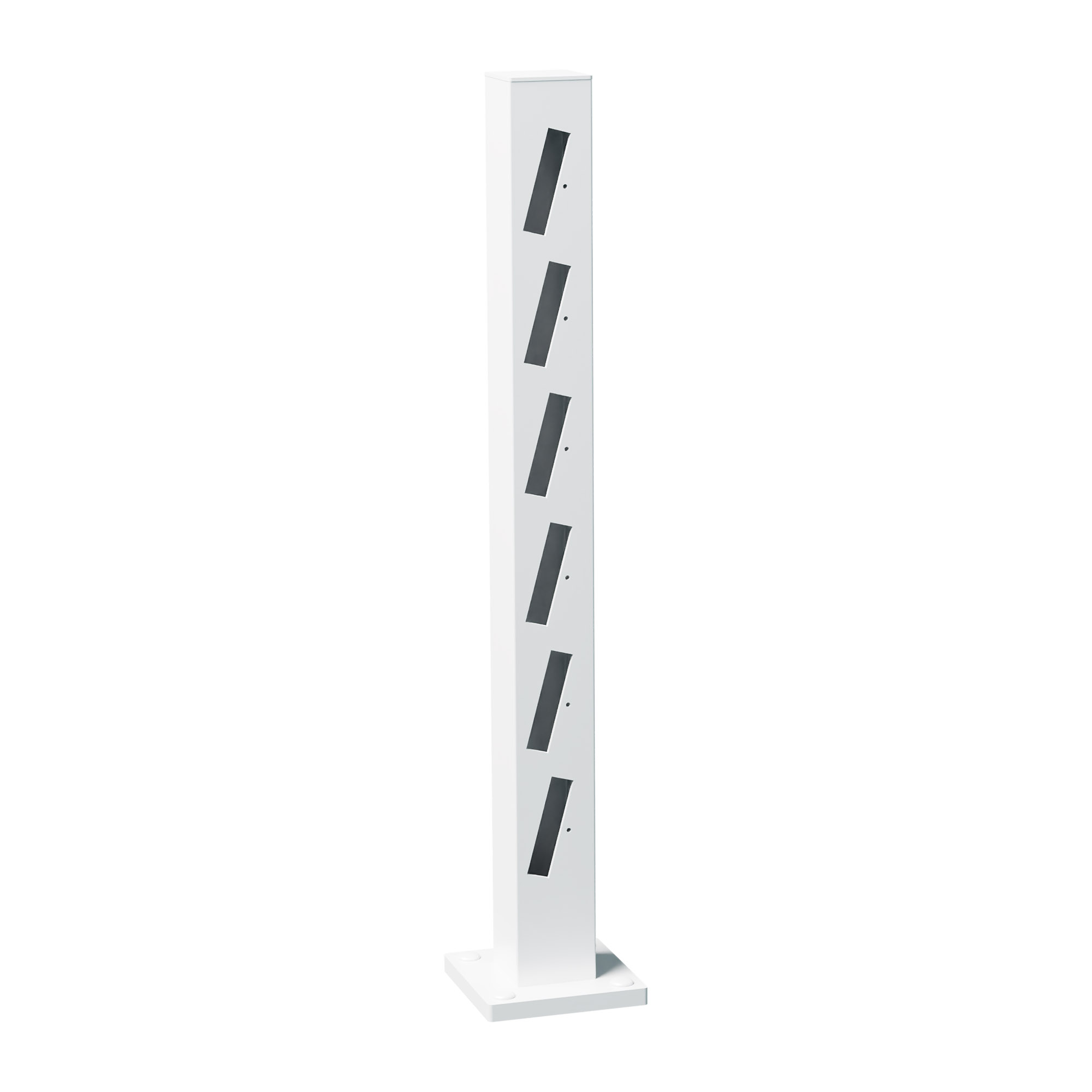 Avståndet mellan marken och första regeln är 10 cm. Avståndet mellan reglarna är 1,5 cm. Hålen är 23 X 97mm. Tänk på att beställa rätt stolptyper för ditt ändamål (mellanstolpar, hörnstolpar, ändstolpe höger eller ändstolpe vänster). För ändstolpe så titta alltid inifrån och ut på staket för att välja höger eller vänster. Stolphatt går att få i svart plast eller av aluminium i valfri kulör. Glöm inte att beställa en stolpfot till varje stolpe. Köp valfritt impregnerat virke om 22 X 95 mm hos din lokala bygghandlare.