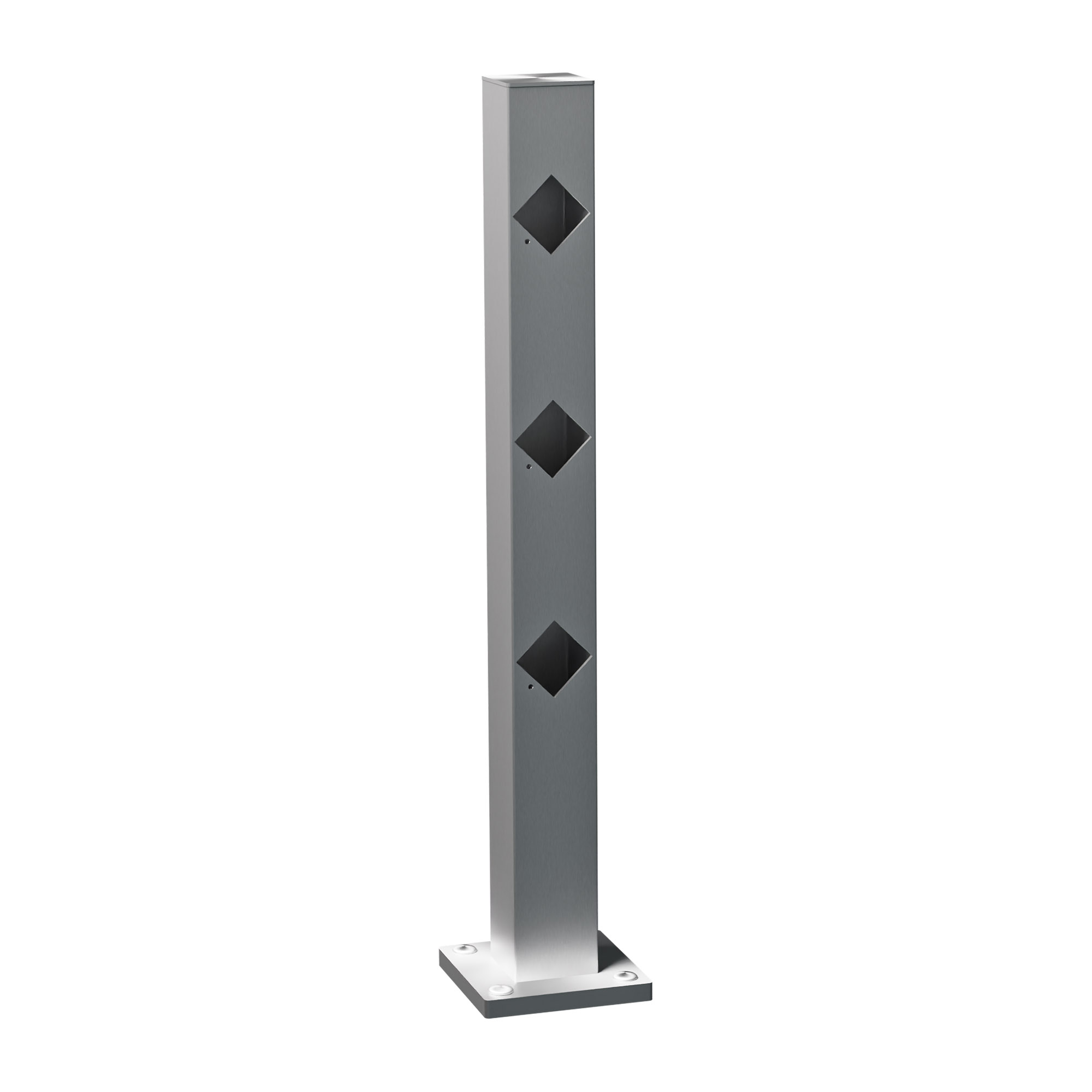 Avståndet mellan marken och första regeln är 24,5 cm. Avståndet mellan reglarna är 12,5 cm. Hålen är 45x45mm. Tänk på att beställa rätt stolptyper för ditt ändamål (mellanstolpar, hörnstolpar, ändstolpe) Stolphatt går att få i svart plast eller av aluminium i valfri kulör. Glöm inte att beställa en stolpfot till varje stolpe. Köp valfritt obehandlat virke 45x45mm hos din lokala bygghandlare. Måla sedan i valfri kulör. Säkerställ att virket inte har svällt för mycket (det försvårar monteringen).