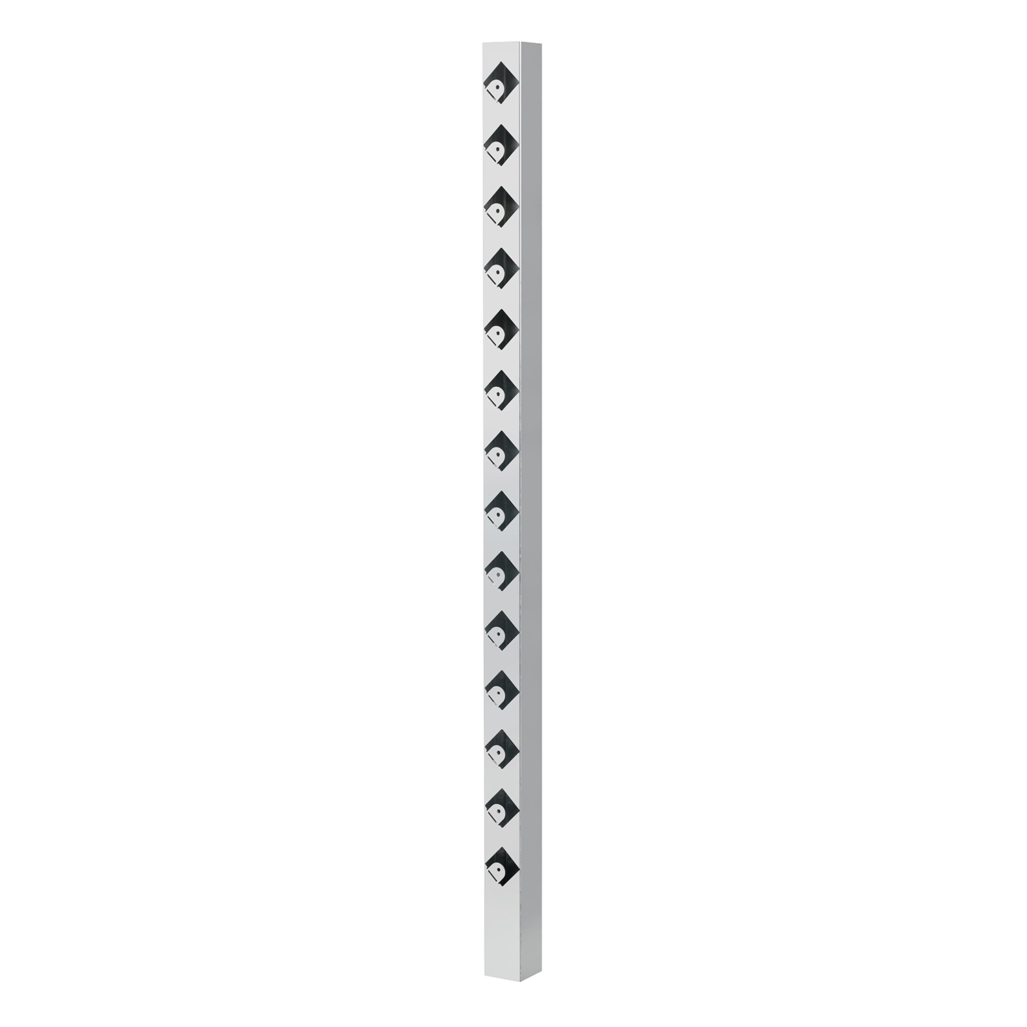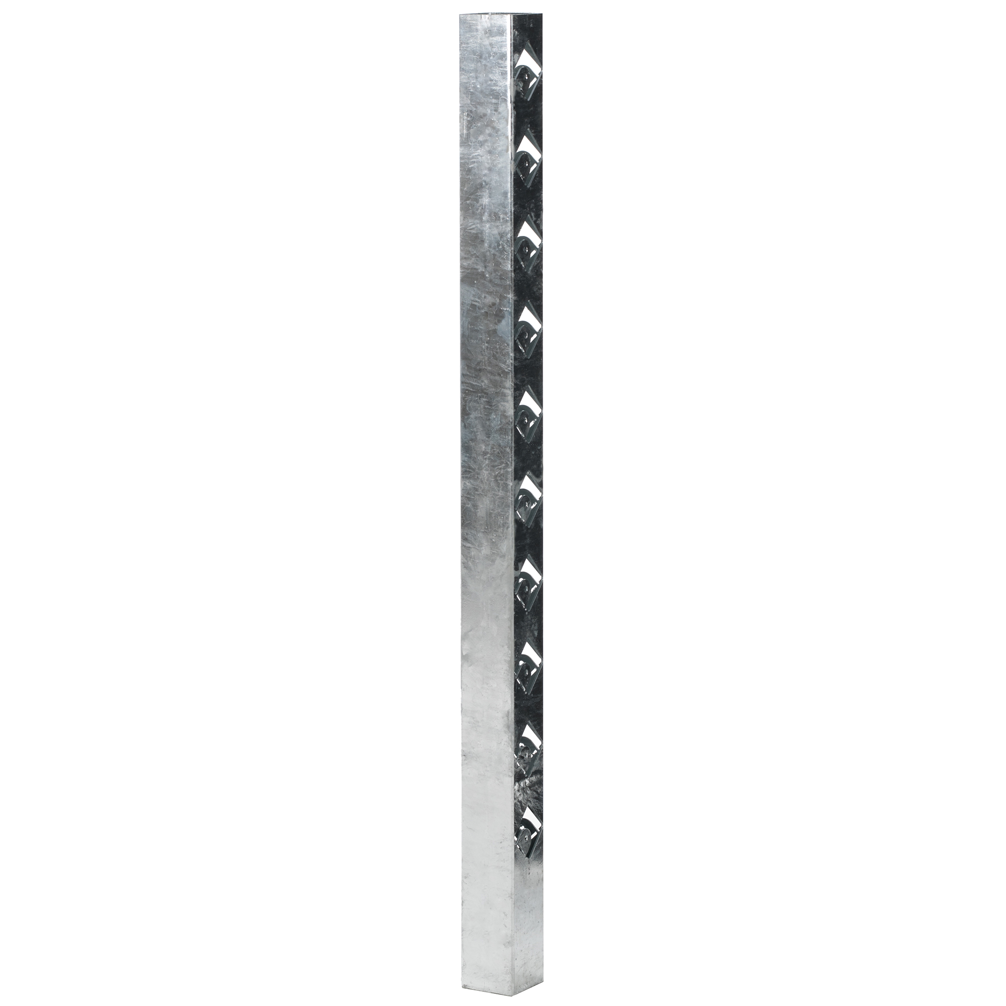 Stolparna mäter 70x70 mm och har laserskurna hål som passar 45x45 mm virke. Montera med tryckimpregnerade reglar eller måla/lasera obehandlat virke innan montering för underhållsfritt och stilrent staket i många år framöver.