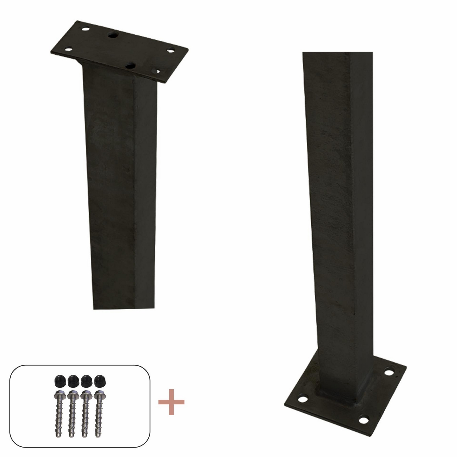 Stålstolpe PLUS Med Fot inkl. Stolpskydd/Bultar 4,5x4,5 cm Svart.