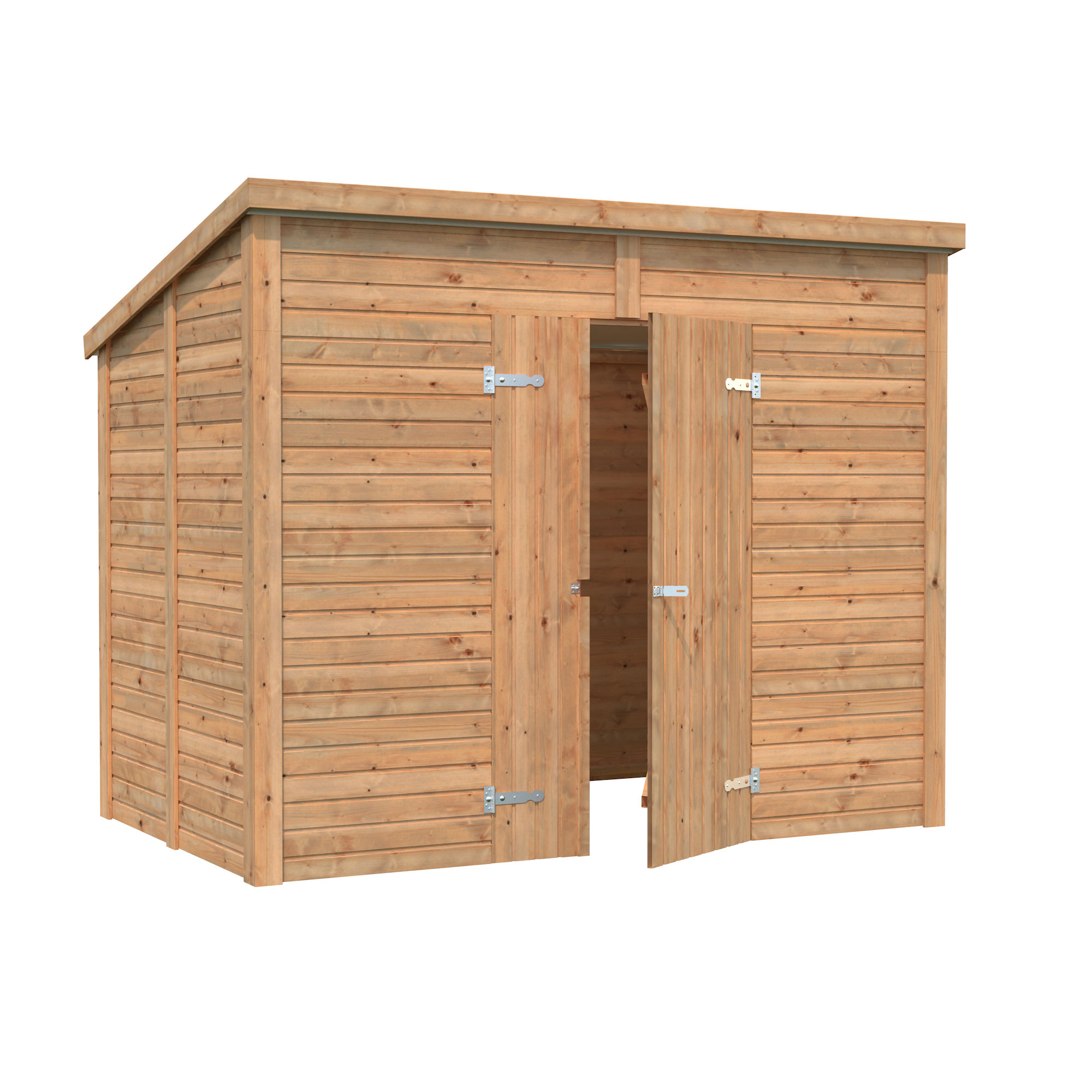 Förrådet är tillverkat i långsamtväxande nordisk gran, ett hållbart material i hög kvalitet som är särskilt anpassat för de svenska tuffa väderförhållandena. Förrådet levereras i en komplett byggsats av färdiga väggelement och med alla nödvändiga fästelement. Alla övriga detaljer är färdigkapade så att du själv enkelt ska kunna bygga ihop ditt förråd.