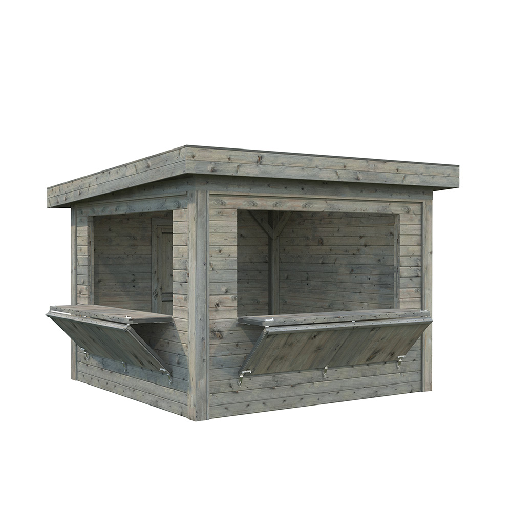 Kiosken är tillverkad av kraftig limträkonstruktion, 19 mm takskiva och 28 mm väggskiva, och är lätt att montera. Tillverkad av nordisk gran med 120x120 mm starka limträstolpar och 19 mm takbrädor. 28 mm vägstockar.